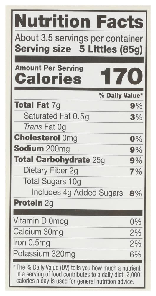 Dr. Praeger's sweet potato littles come in a 10 ounce box filled with a sweet and savory snack perfect for kids - and adults. Our gluten-free littles are made with simple ingredients like sweet potatoes, canola oil, egg whites and brown sugar. Non-GMO project verified, this product is certified gluten free and kosher-parve. See nutrition panel for allergen information.