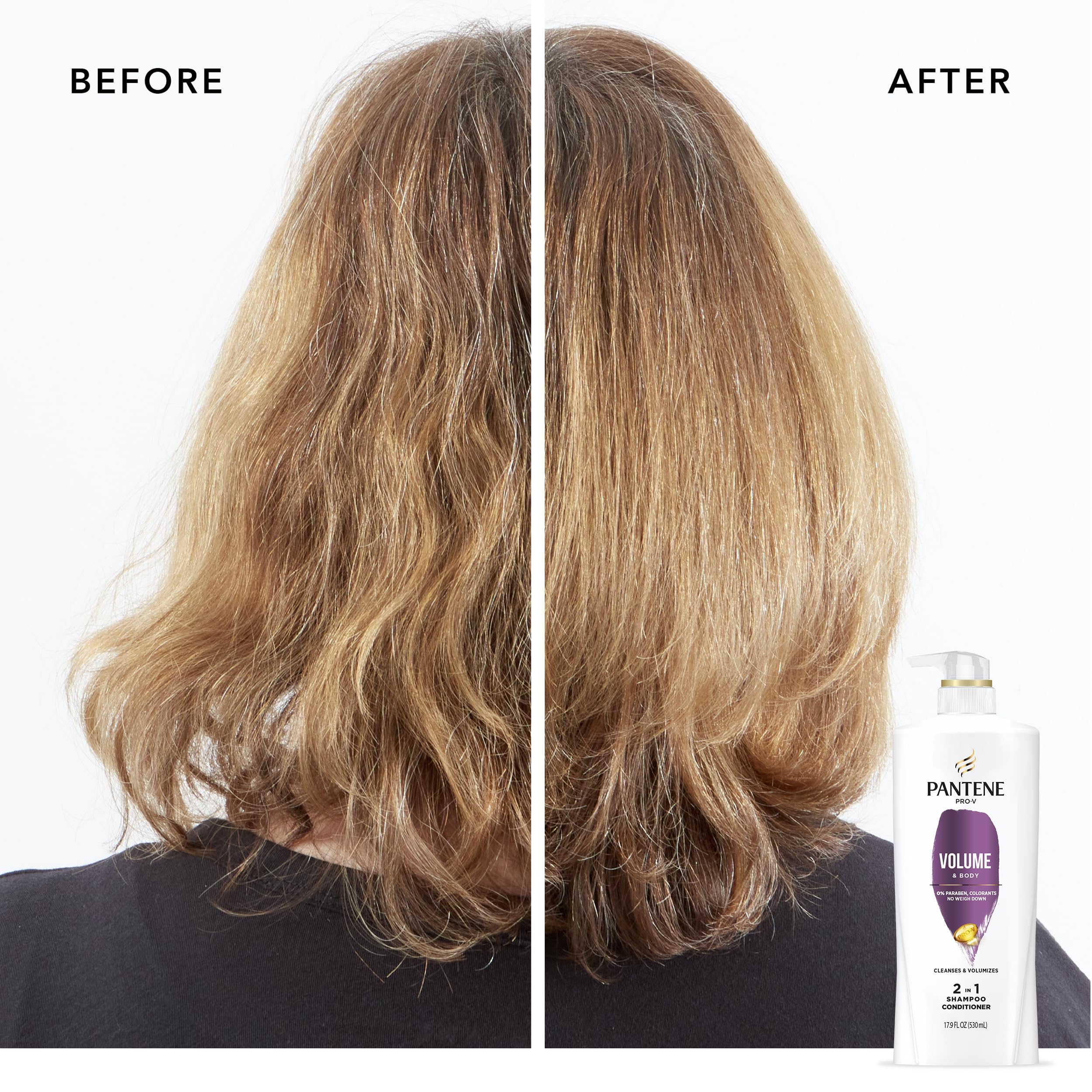 CLEANSES & VOLUMIZES Is your hair limp and lifeless? Pump up the volume with Pantene Pro-V Sheer Volume 2-in-1 Shampoo & Conditioner. Our 2-in-1 formula is designed to gently cleanse hair and add moisture and lift in one step. Helps remove buildup and reveals noticeable volume, lift, and control when styled. Pair with Volume Body Boosting Mousse for 72-hour fullness and unbelievable body. Reveal healthy-looking hair that’s volumized, lifted, and fresh.Our new and improved formula offers 72-hour fullness and two times the pro-vitamins for luxury repair results without the luxury price tag. This nutrient-rich formula is packed with antioxidants and two times the amount of pro-vitamin B5 to help strengthen existing hair bonds and build new ones. Lift your spirits and your follicles with the scent of creamy berries.Perfect for use on fine or thin hair. Crafted to cleanse and condition all hair types and is gentle enough for use on permed or color-treated hair. Free of parabens and colorants for no harsh stripping.HOW TO USE: Gently massage into wet hair. Focusing on the scalp and roots, work into a rich lather. Pull lather through to the ends of your hair. Rinse thoroughly. Repeat these steps if you’re going multiple days between washes for lasting freshness.