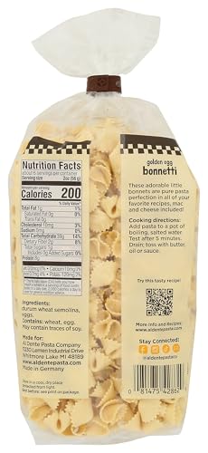 Our delightful egg 'bonnets' are crafted by blending fresh, cage-free eggs with high-protein, sustainably grown durum wheat. Golden Egg Bonnetti is adaptable and tasty, flawlessly absorbing sauce or vegetables, and excelling in pasta salads. Cooks in merely 5 minutes!