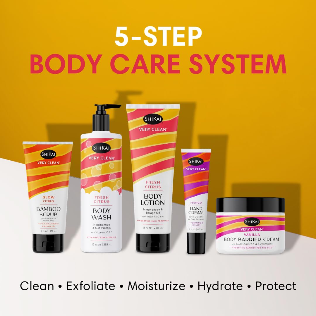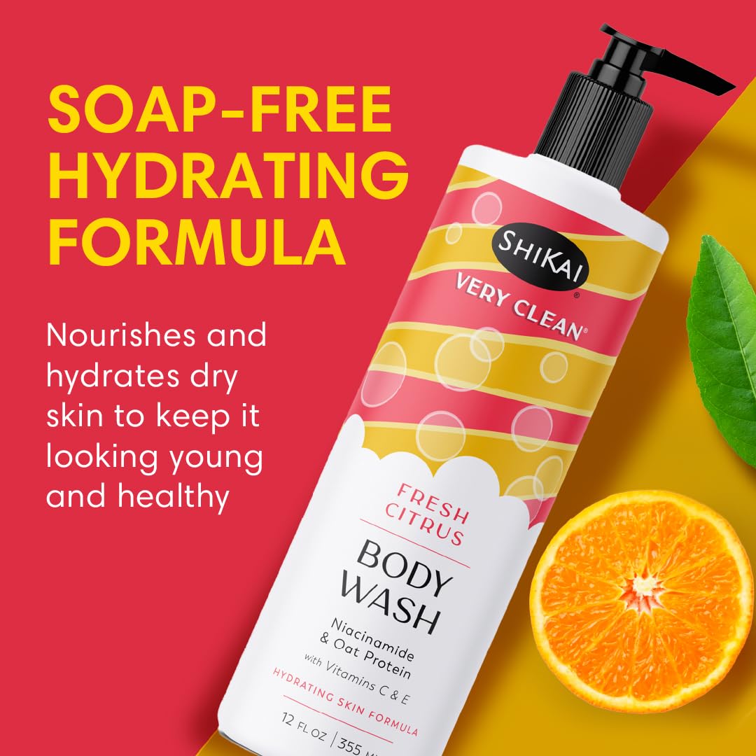 ShiKai Very Clean Body Wash (Fresh Citrus, 12 oz) | Hydrating Gel Cleanser for Dry Skin | With Niacinamide, Oat Protein, Vitamins C & E