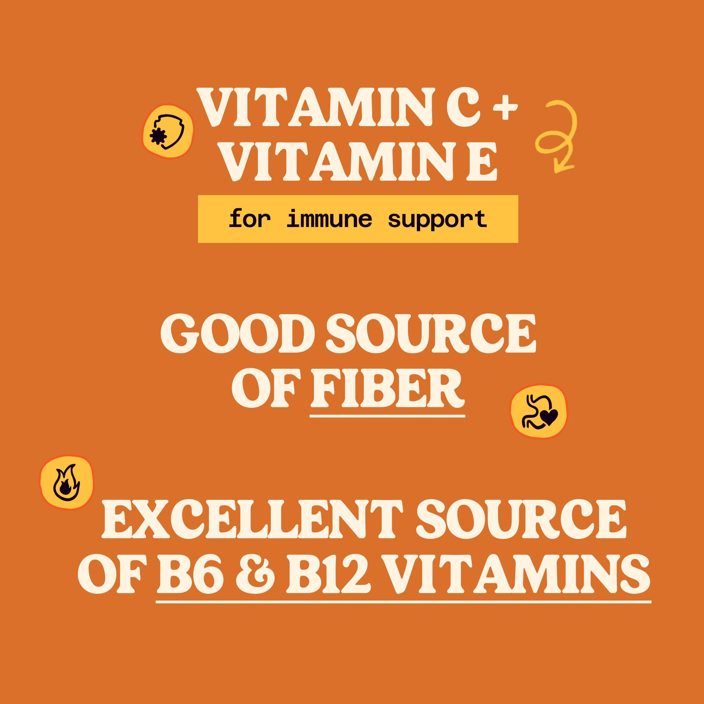 Vitamins A and C No sugar added No preservatives Non-GMO Kosher Gluten Free