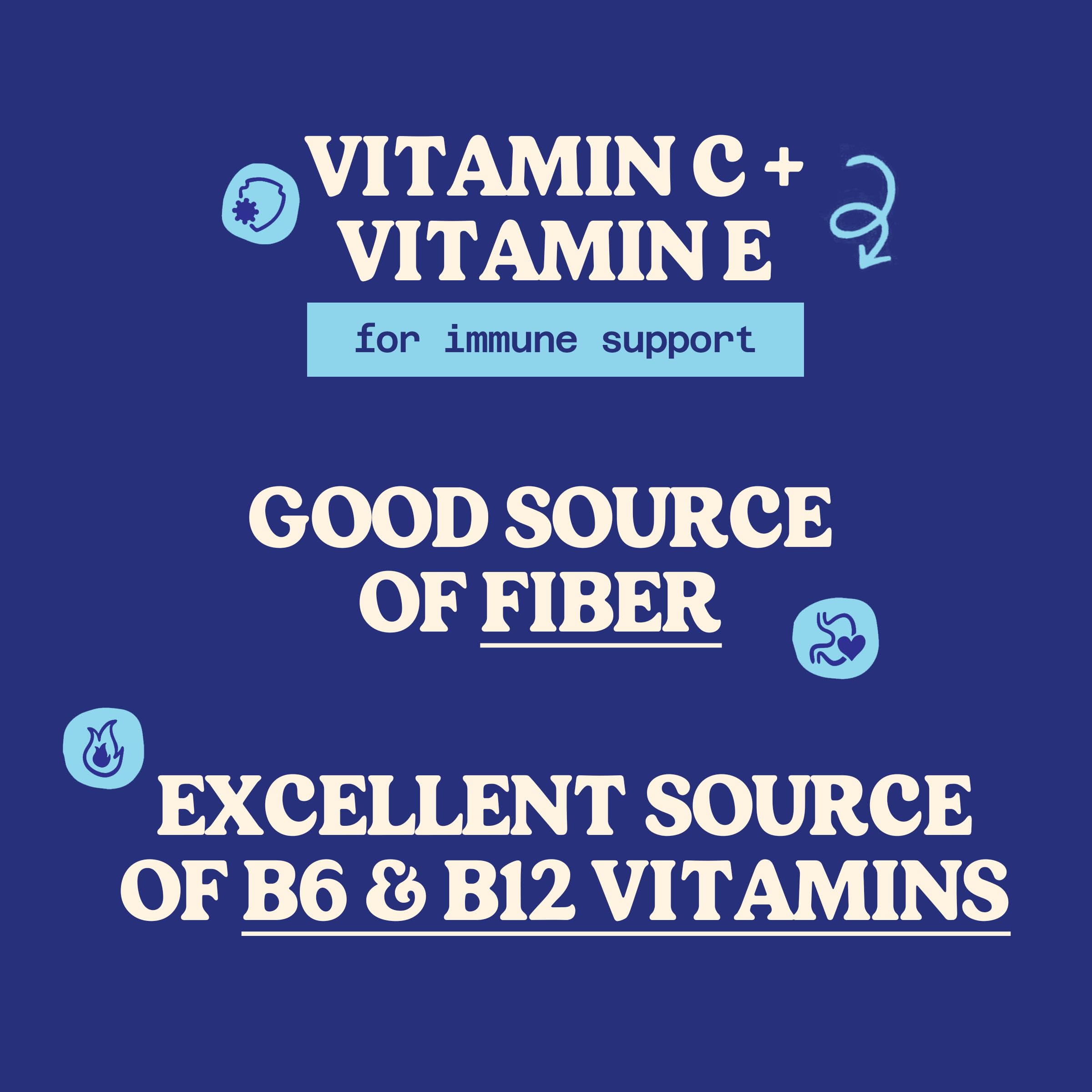 Vitamin B and fiber No sugar added No preservatives Non-GMO Kosher Gluten Free