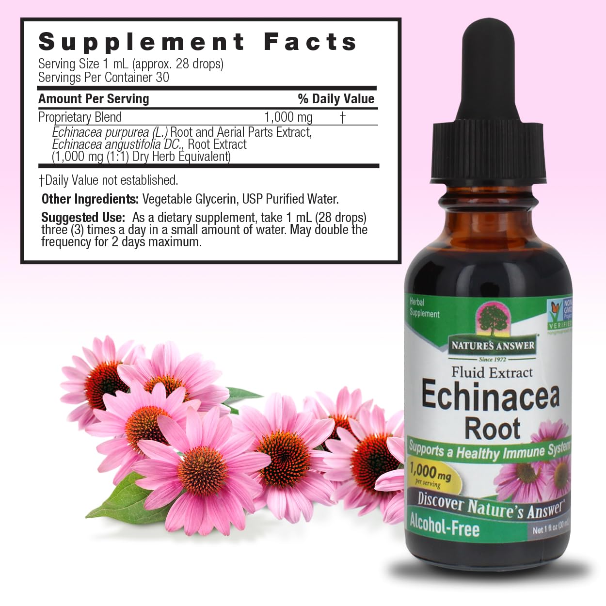 Nature's Answer Echinacea Alcohol Free Extract 1 Fluid Ounce | Promotes Overall Wellness | Natural Immune Booster | Inflammatory Reducer