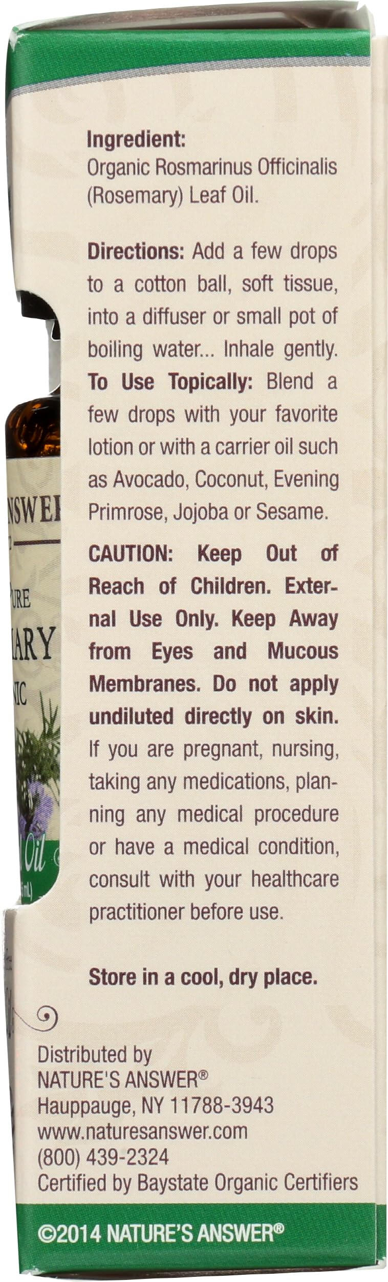 Nature’s Answer USDA Organic Rosemary Essential Oil, 100% Pure | Natural Aromatherapy Oil for Diffuser/Humidifier, Steam Distilled 0.5 fl oz. (15ml) | Made in USA