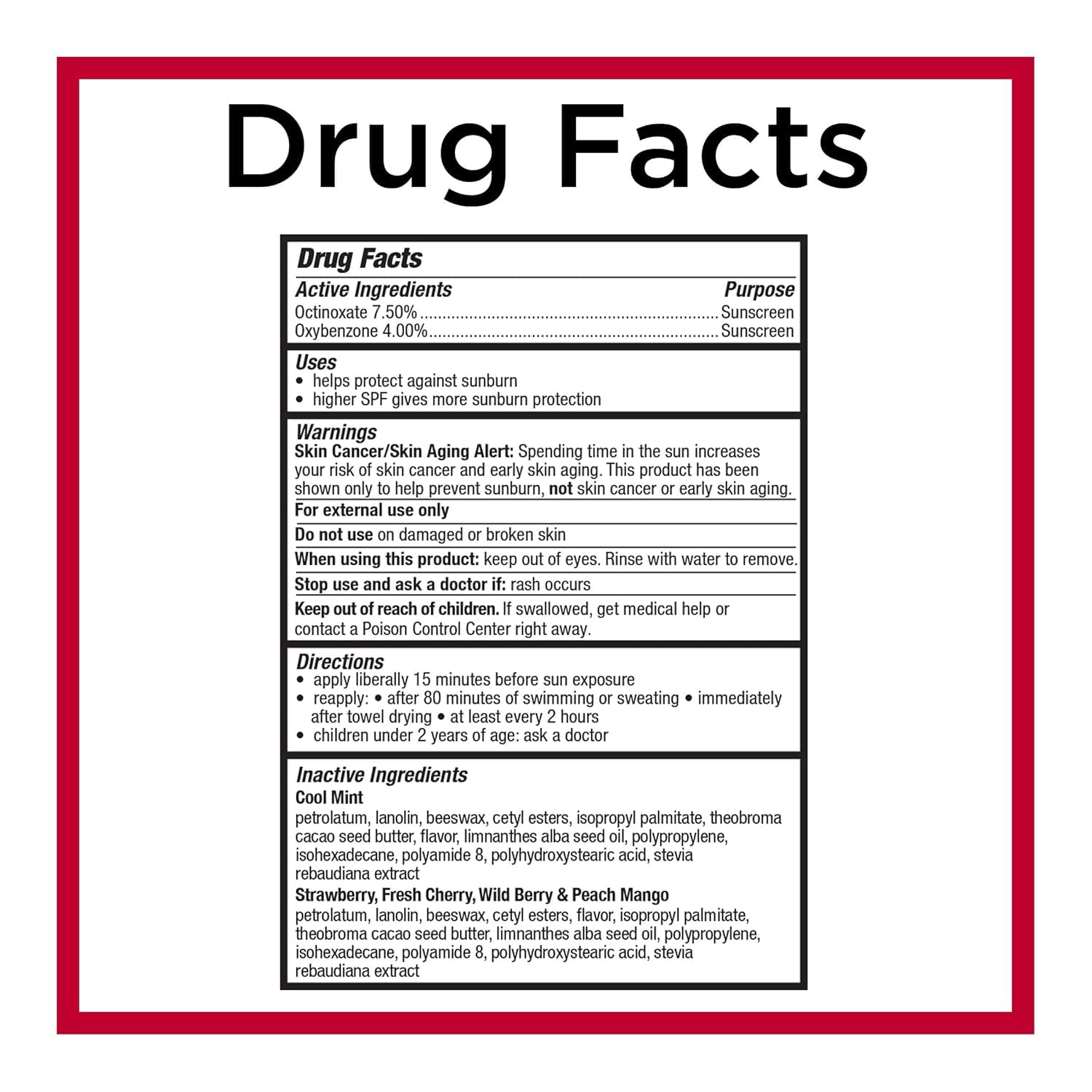 PRODUCT DETAILS Item No. 0188916 Good things come in small packages! 5 yummy Carmex flavors: Strawberry, Fresh Cherry, Wild Berry, Cool Mint and Peach Mango. These cute, mini-sized tubes are perfect for your pocket, purse or bag. Everyday moisture with SPF 15 sun protection and water-resistant up to 80 minutes. Carmex lip balm is designed to help you look and feel your best with a variety of lip care products from cold sore treatment to lip balm with SPF. We are dedicated to providing consumers with superior lip balm formulasthat heal, sooth and protectwhile ensuring lips remain healthy and hydrated. SPF 15 Strawberry, Fresh Cherry, Wild Berry, Cool Mint and Peach Mango Mini pocket sized tubes ideal for daily use year-round Country of origin is United States INGREDIENTS See Image SAFETY