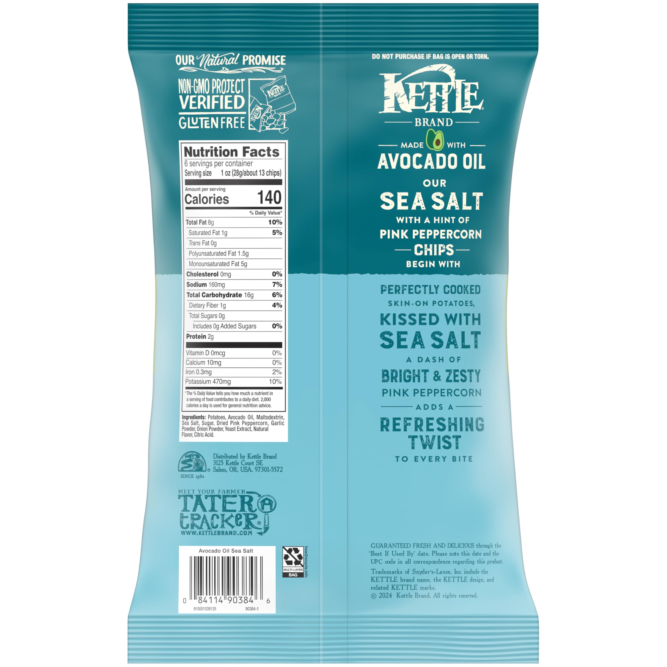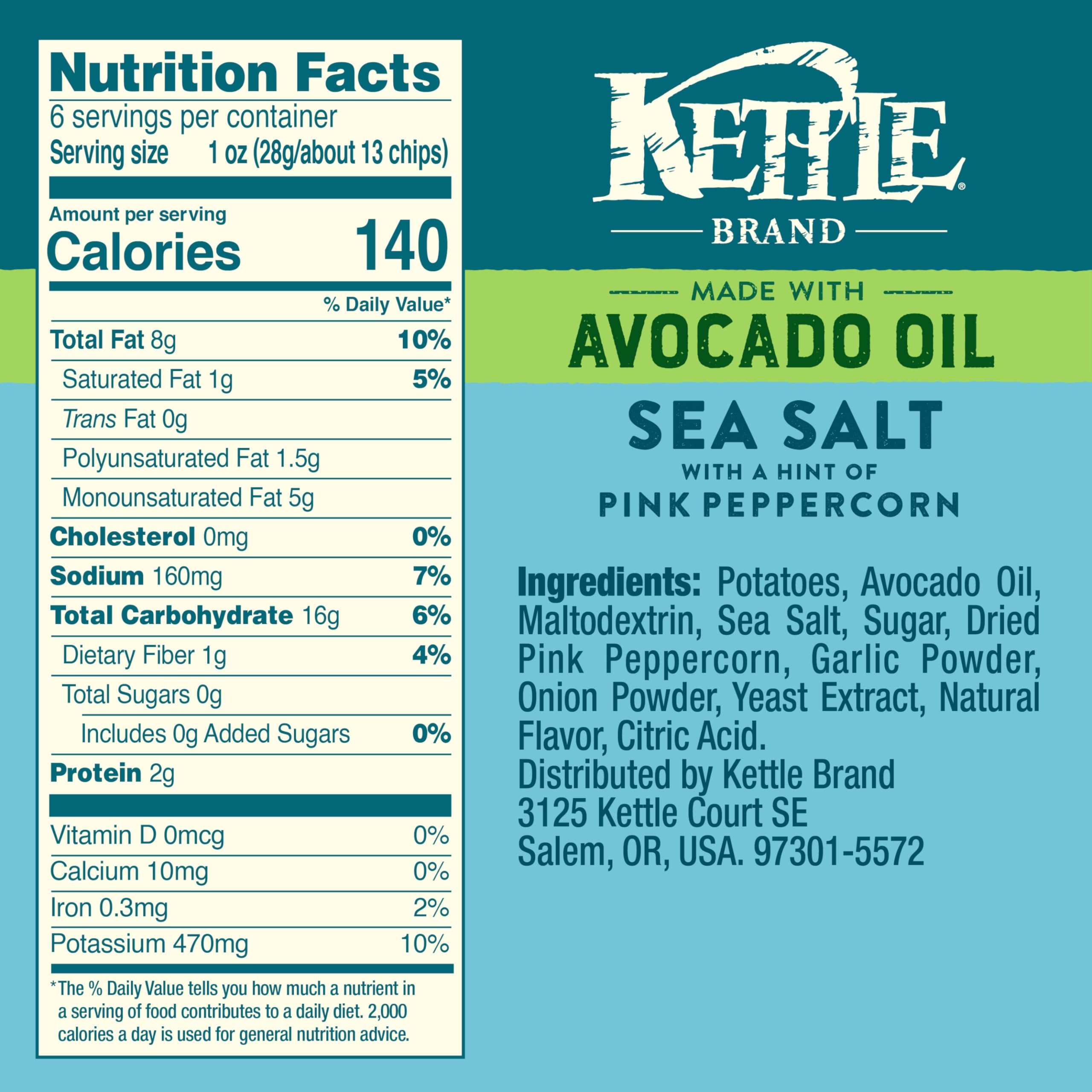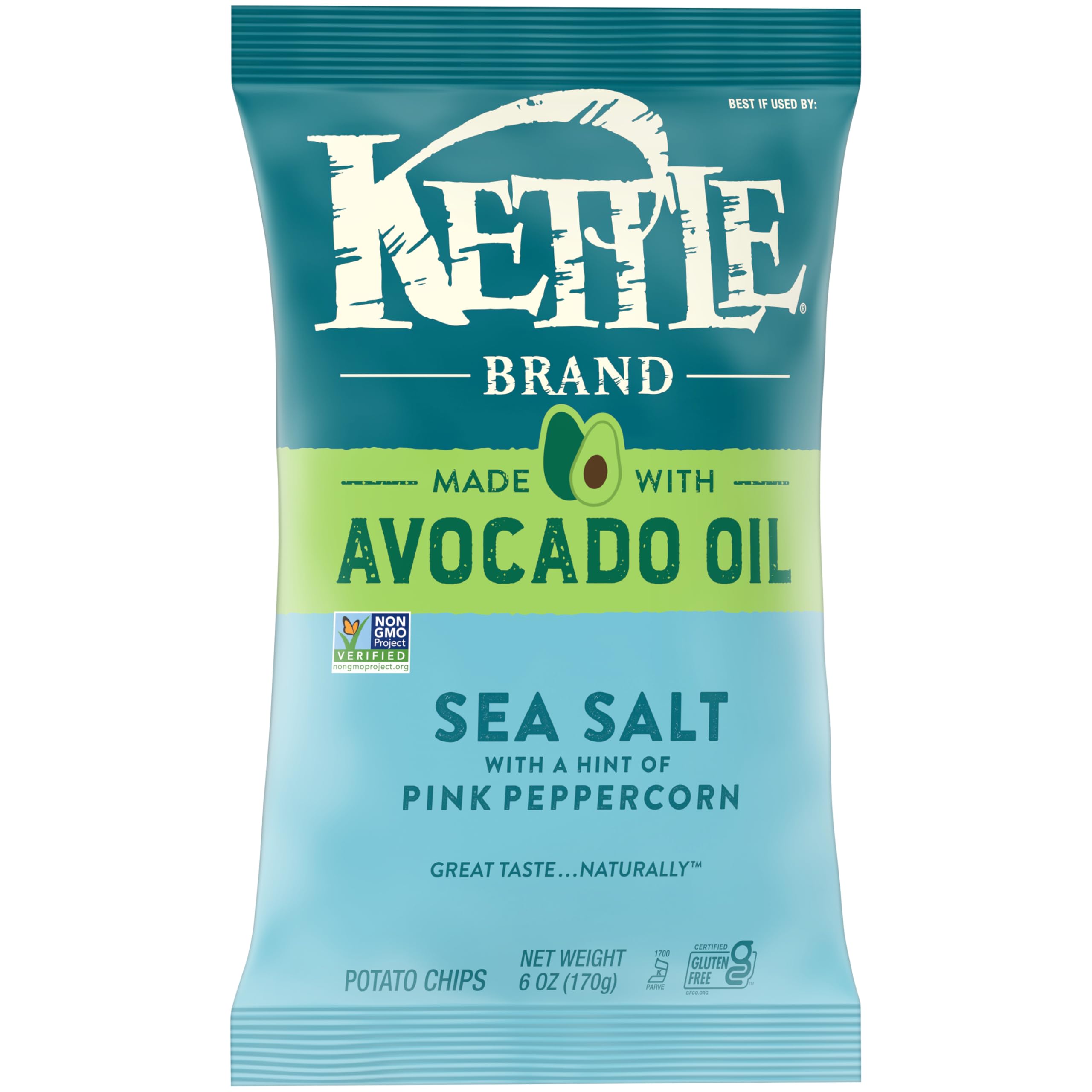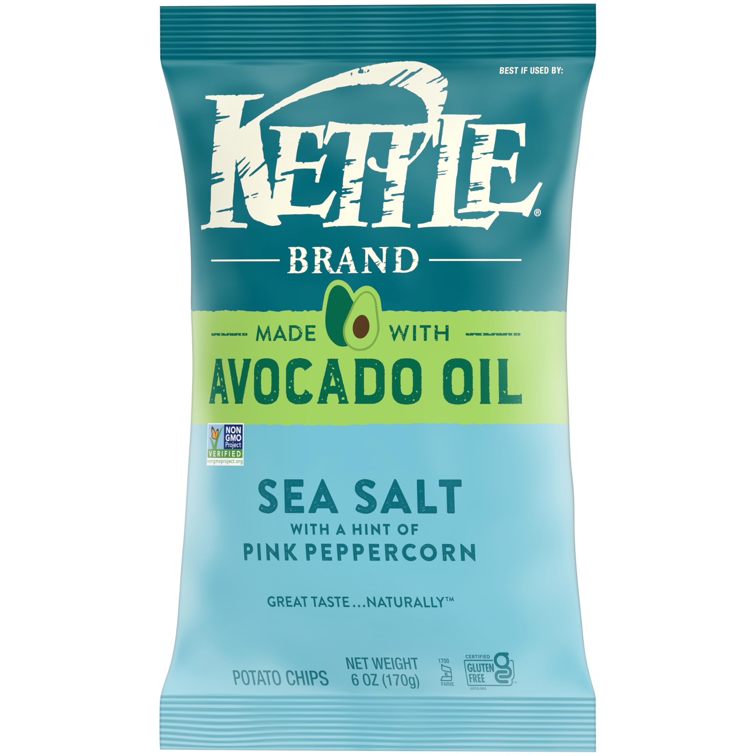 Kettle Brand Made with Avocado Oil Sea Salt Pink Peppercorn Chips, 6 Oz Bag