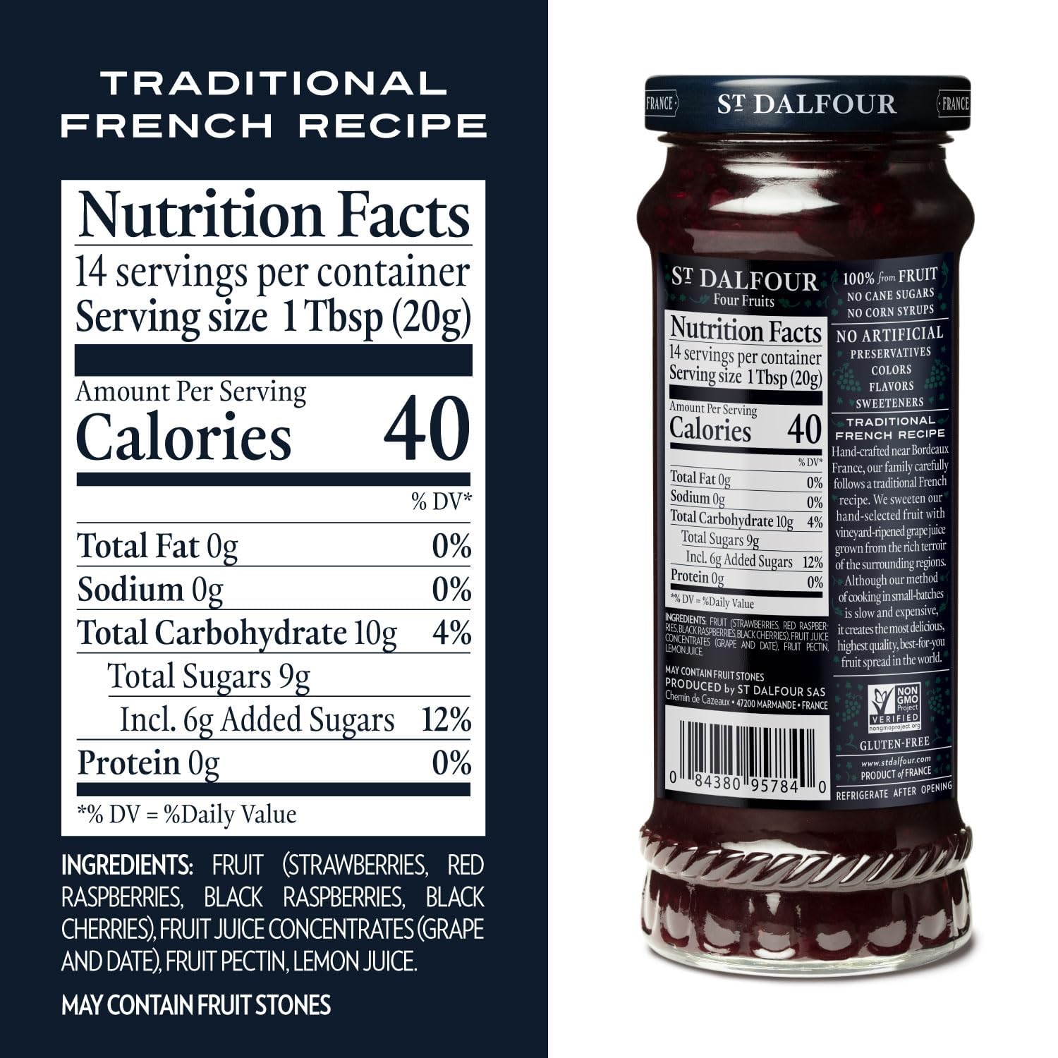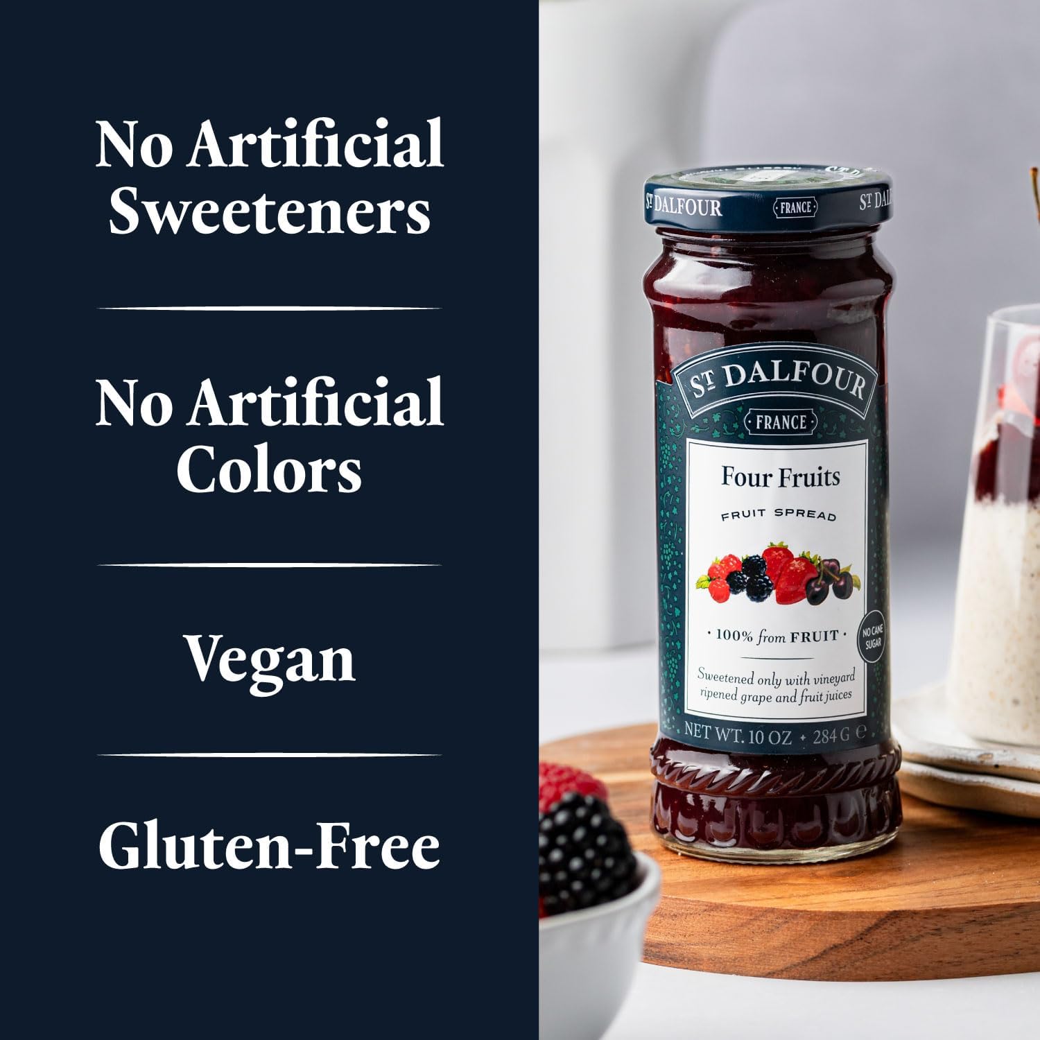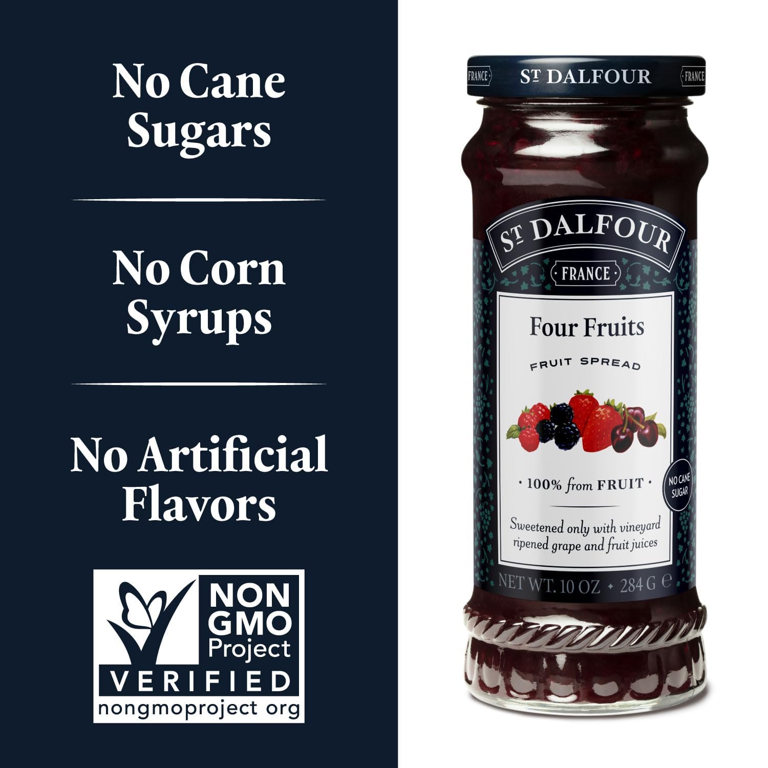 St. Dalfour Four Fruits Fruit Spread - 10oz - 100% from Fruit, No Artificial Ingredients, Non-GMO, No Cane Sugars, All Natural, Made in France