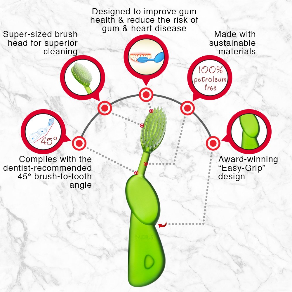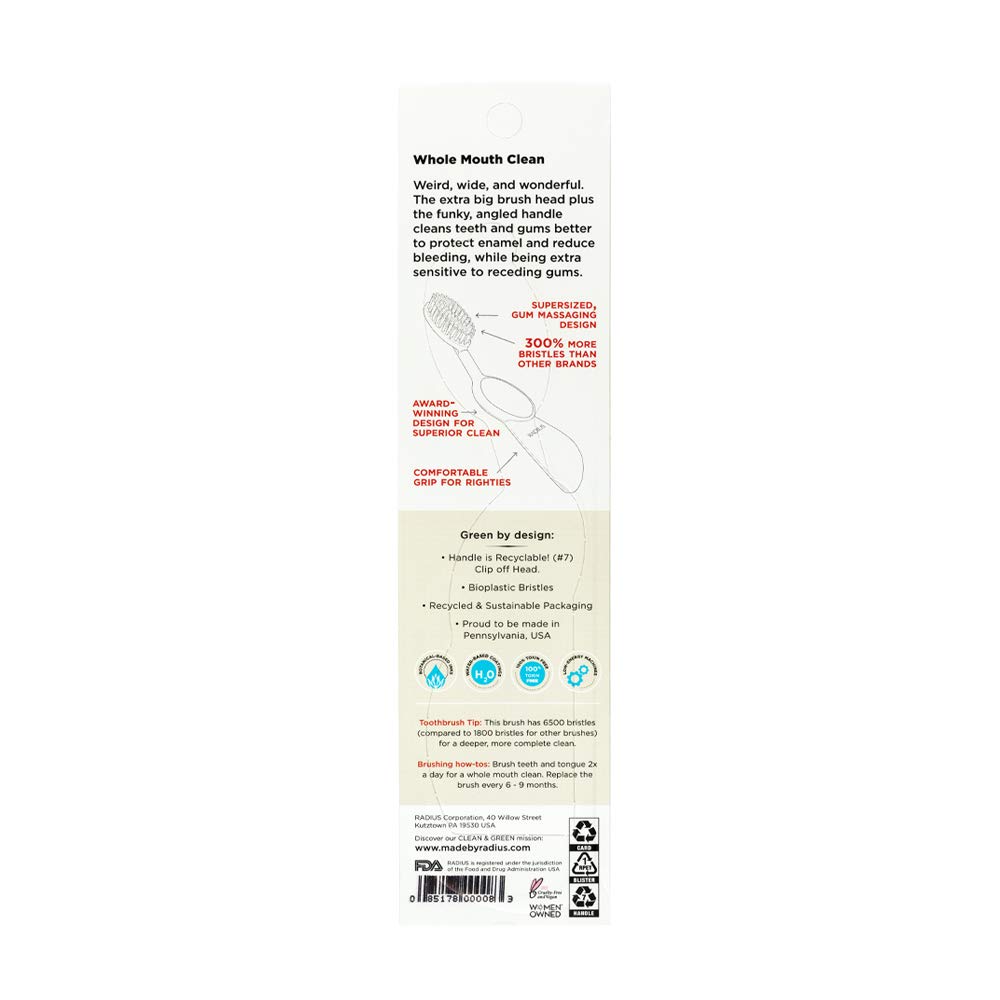 RADIUS - Original Toothbrush, Right Handed, Designed to Improve Gum Health and Reduce the Risk of Gum Disease, Made with Sustainable Materials, 1 Count (Pack of 1) (Colors may vary)