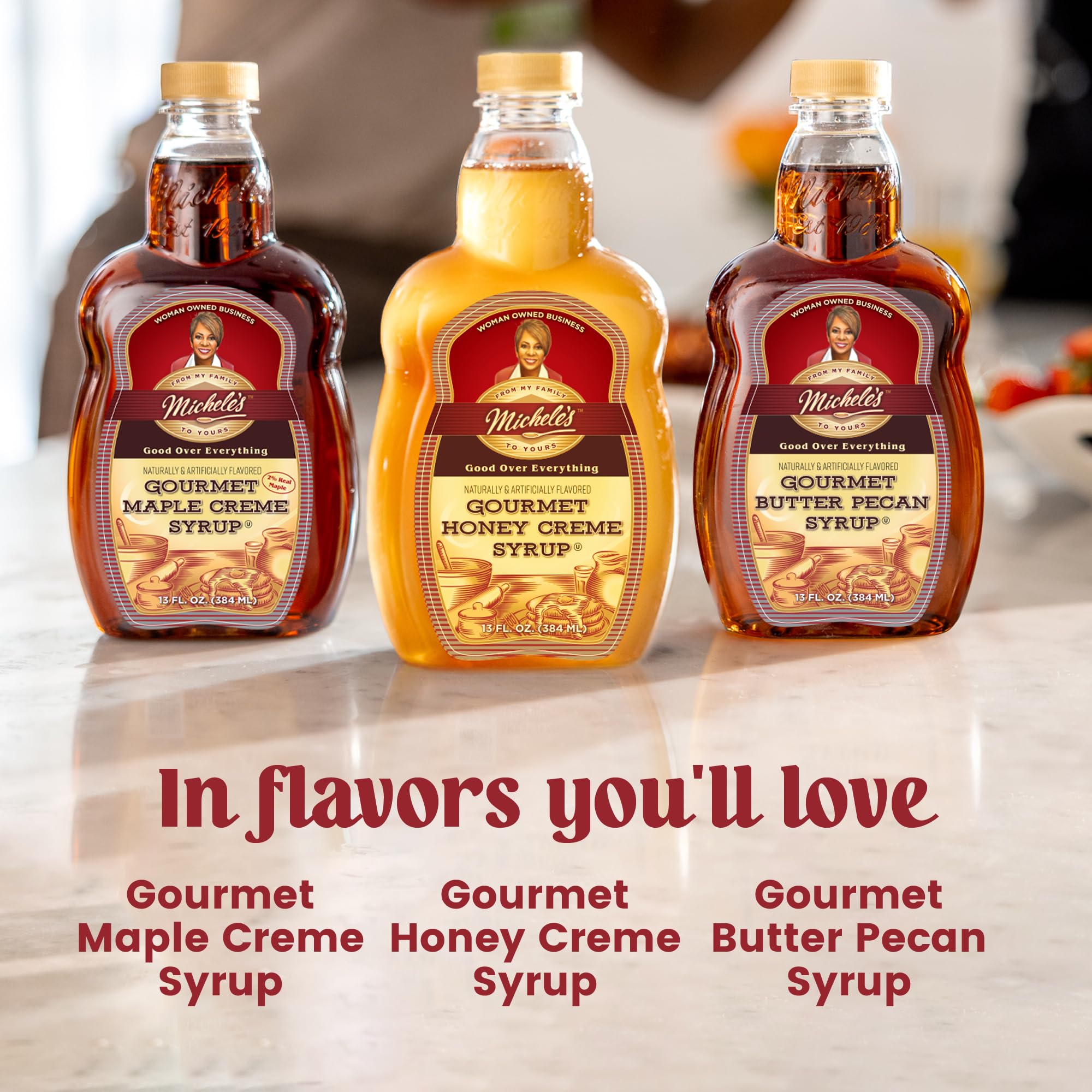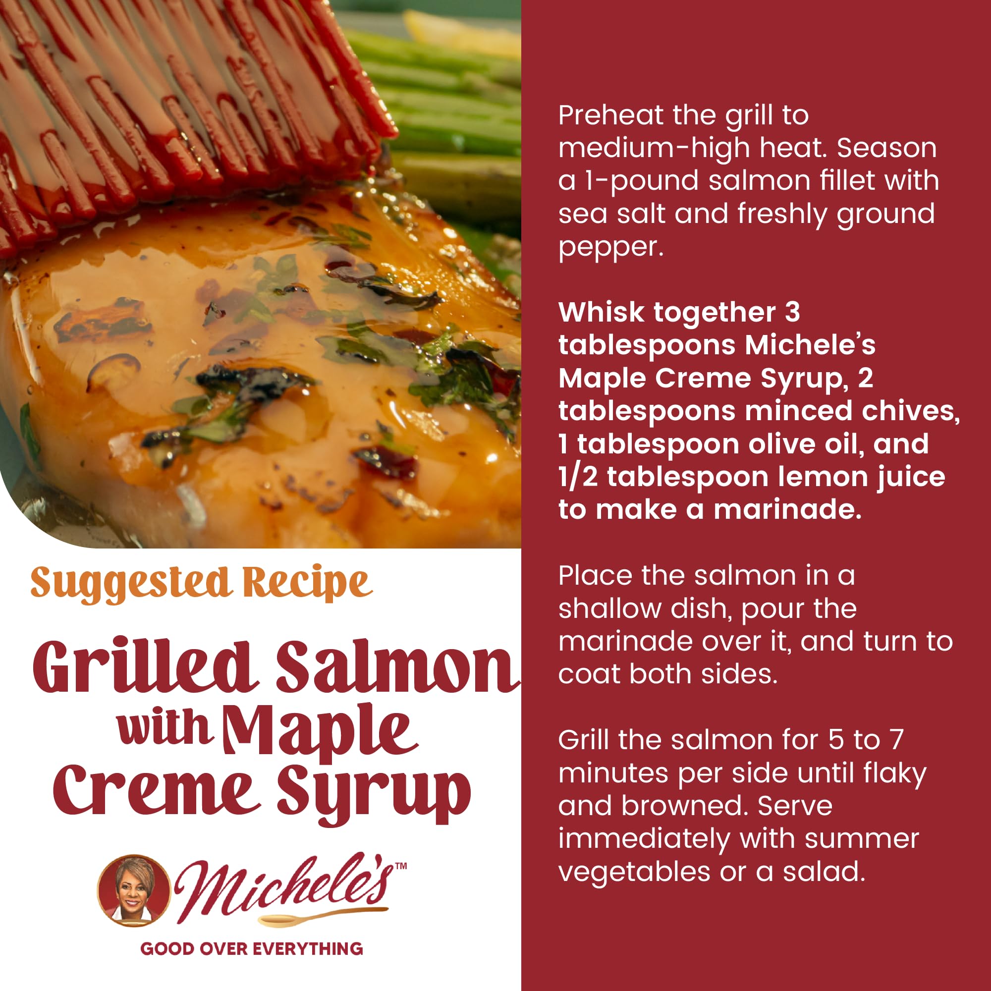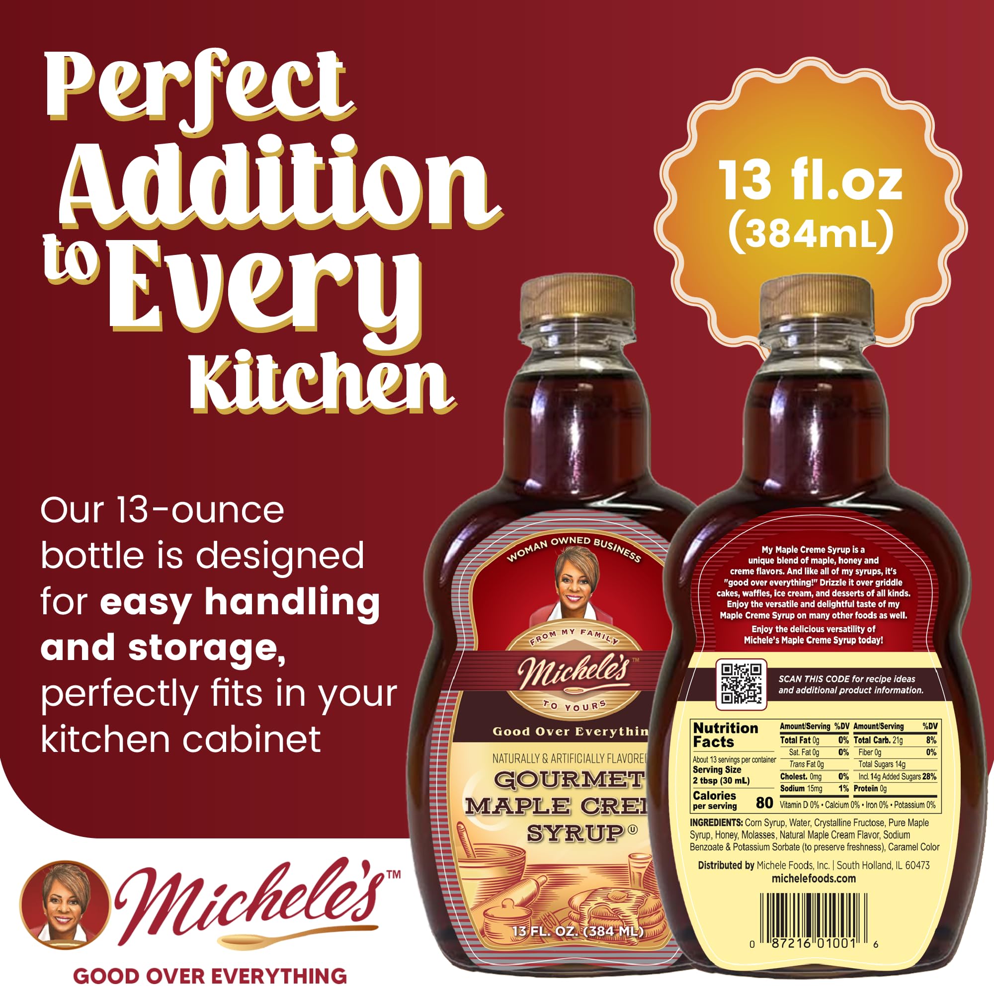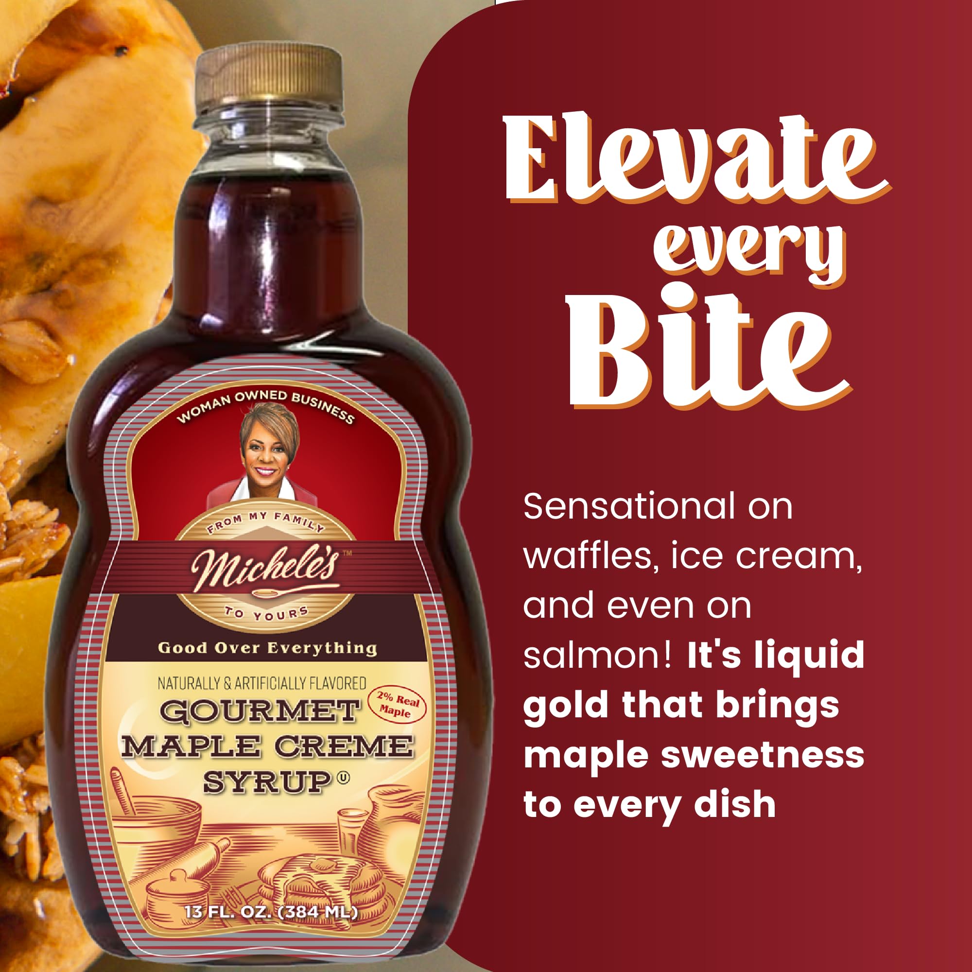 Michele’s Gourmet Maple Creme Syrup | 13 Ounce | Good Over Everything! | Foodie Gift, Ice Cream & Desert Topping, Recipe ingredient, Condiment | Great on Salmon, Pork, Beef, Ribs & More!