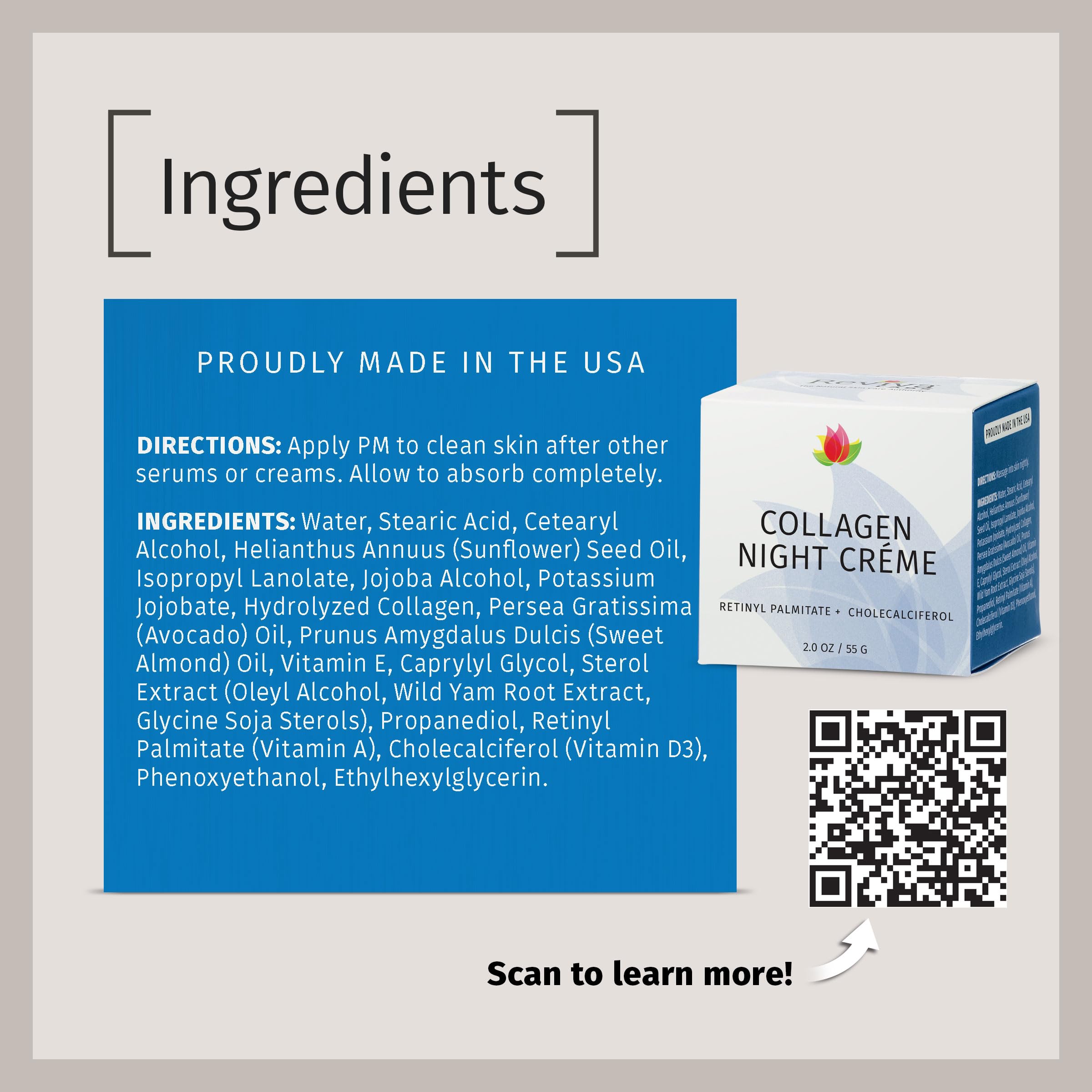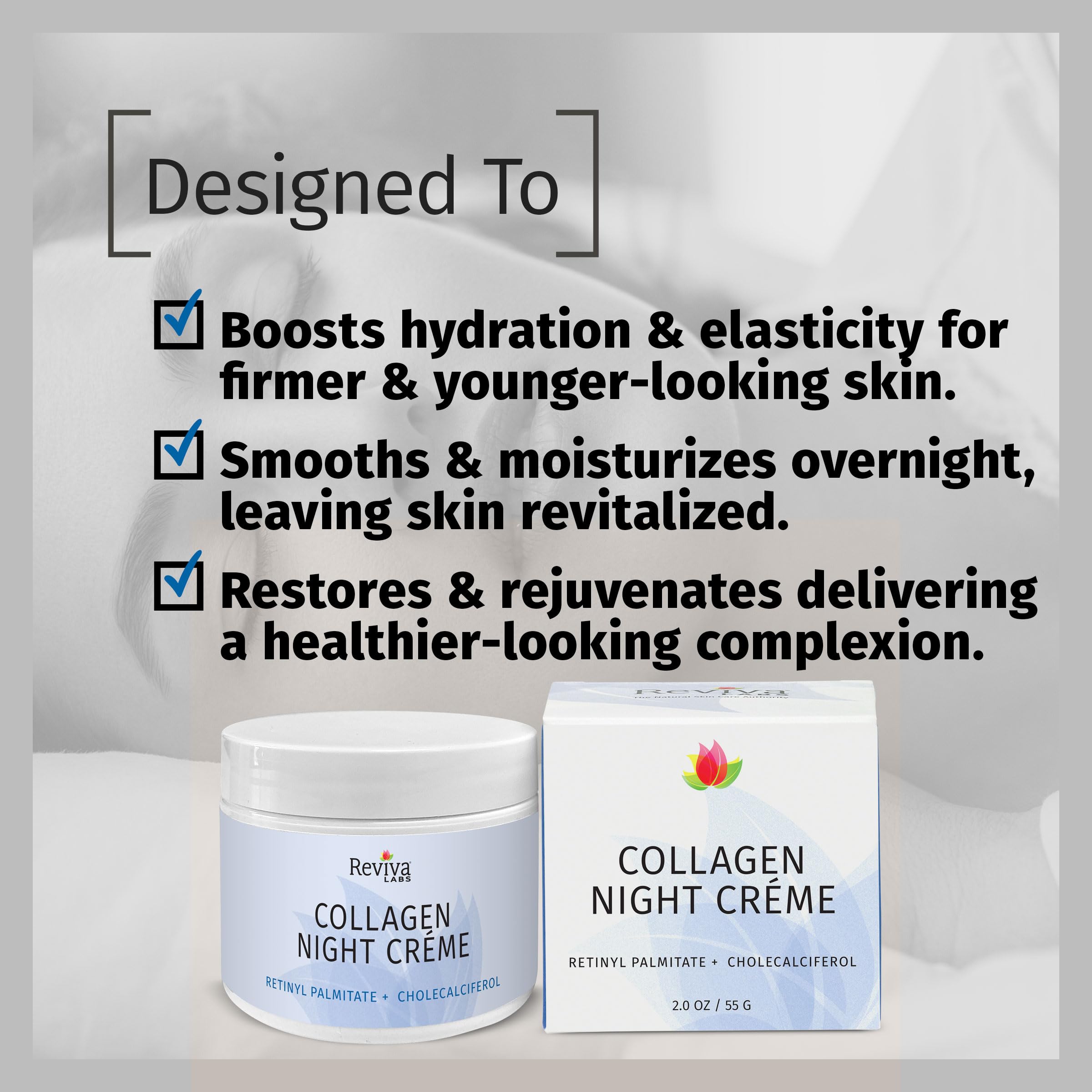 Reviva Labs Collagen Night Cream – Hydrating Face Cream for Women with Hydrolyzed Collagen and Natural Oils for Youthful, Supple Skin – Firming Moisturizer for Face & Neck Area, 2 oz
