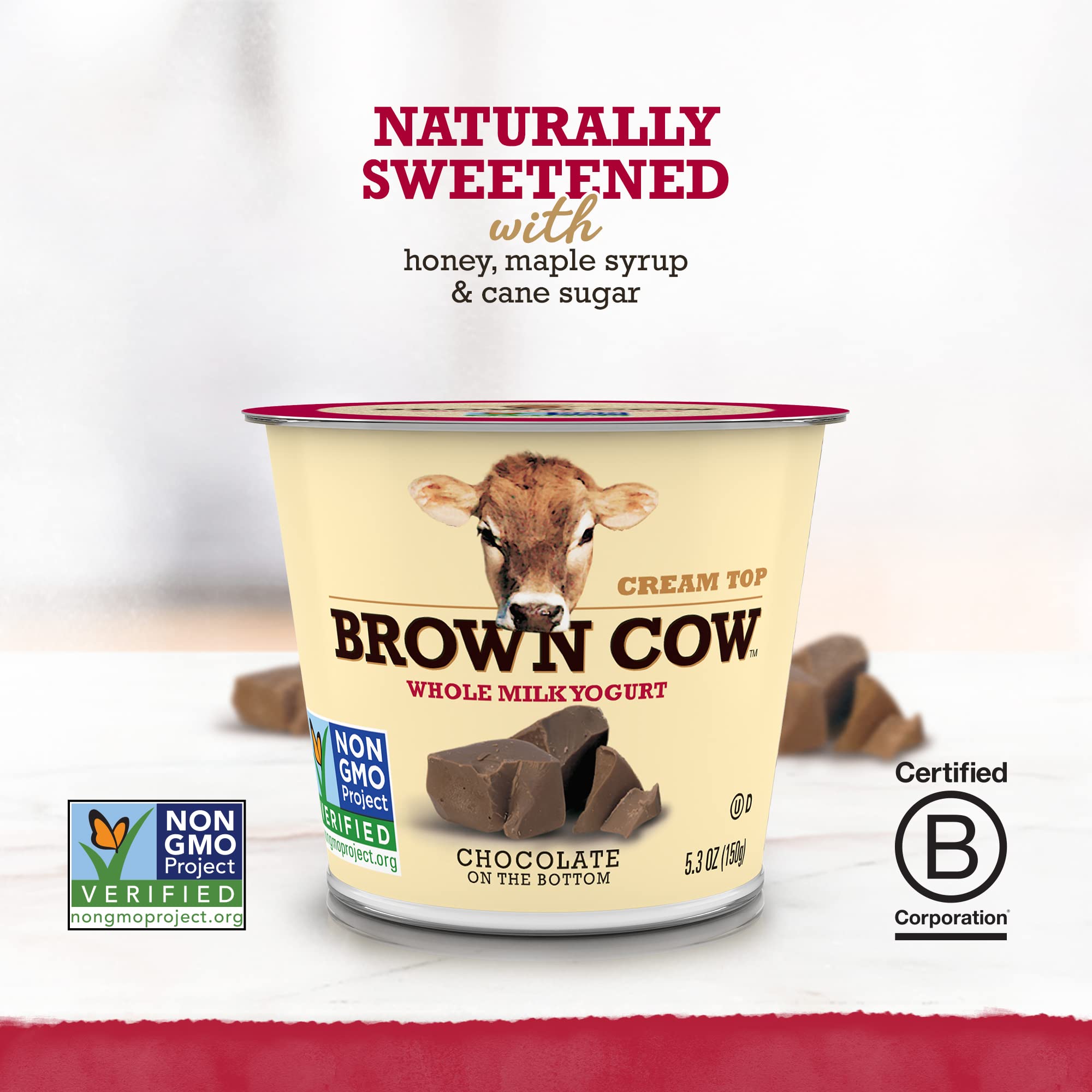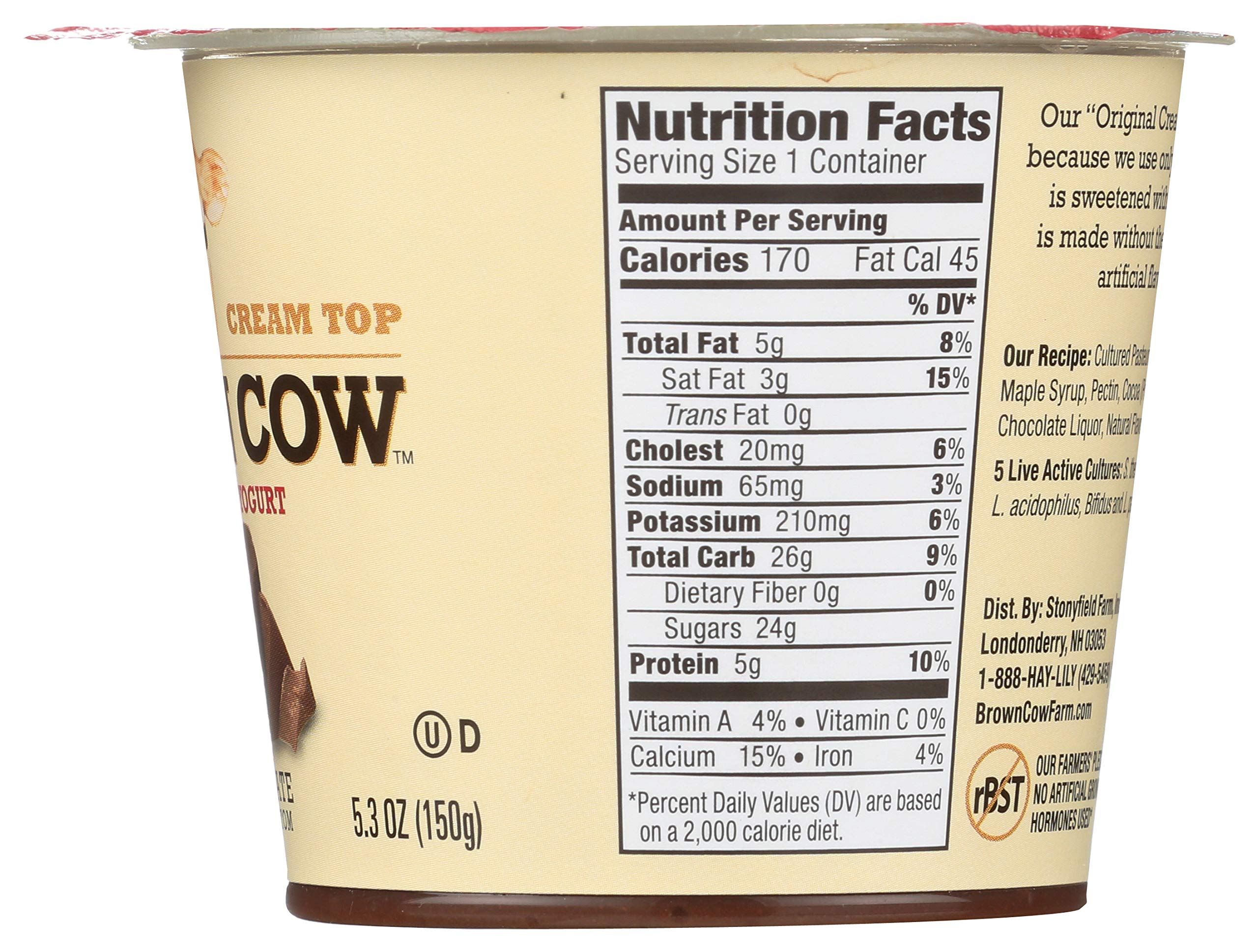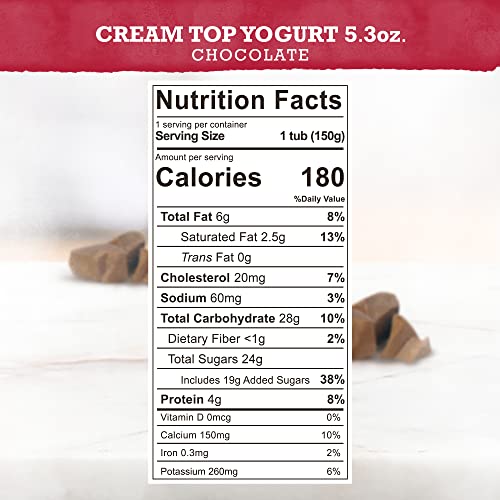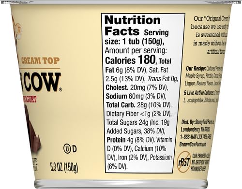 Brown Cow Cream Top Yogurts are reminiscent of the way yogurt used to be made when rich, smooth cream rose to the top. Made with whole milk, our cream top yogurt features sweet cream on top and chocolate on bottom. Includes live and active cultures. We sweeten our cream tops with cane sugar, maple syrup, and/or honey – no artificial sweeteners, ever. At Brown Cow, we've been making yogurt for more than 30 years, beginning in New York and now in Londonderry, New Hampshire. You'll taste the difference from our years of experience perfecting heritage-style cream top yogurt from the very first spoonful. So go on, treat yourself. The cream always rises to the top.