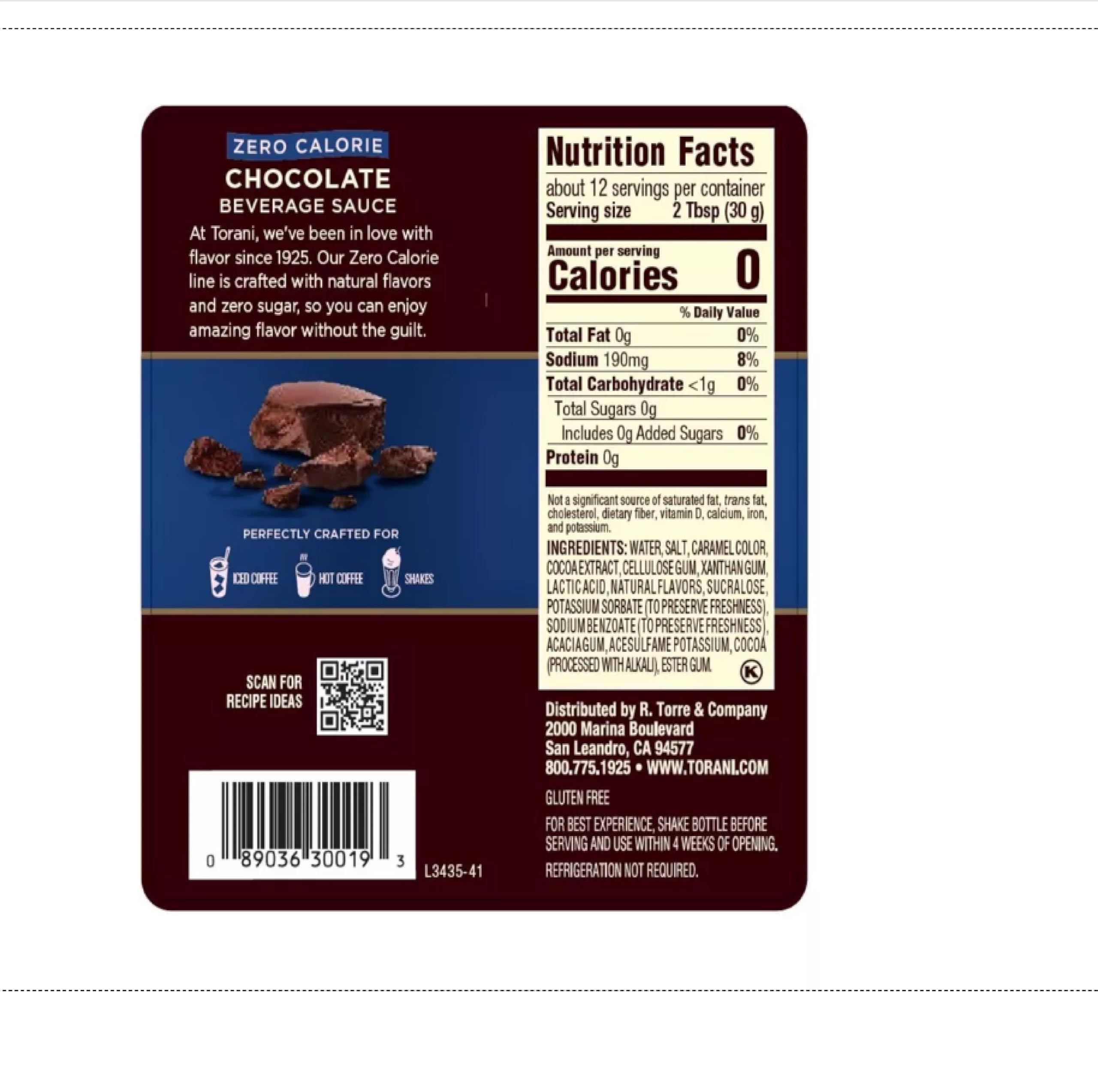 Torani, Zero Calorie Chocolate Flavored Beverage Sauce, 12.8 Fl Oz