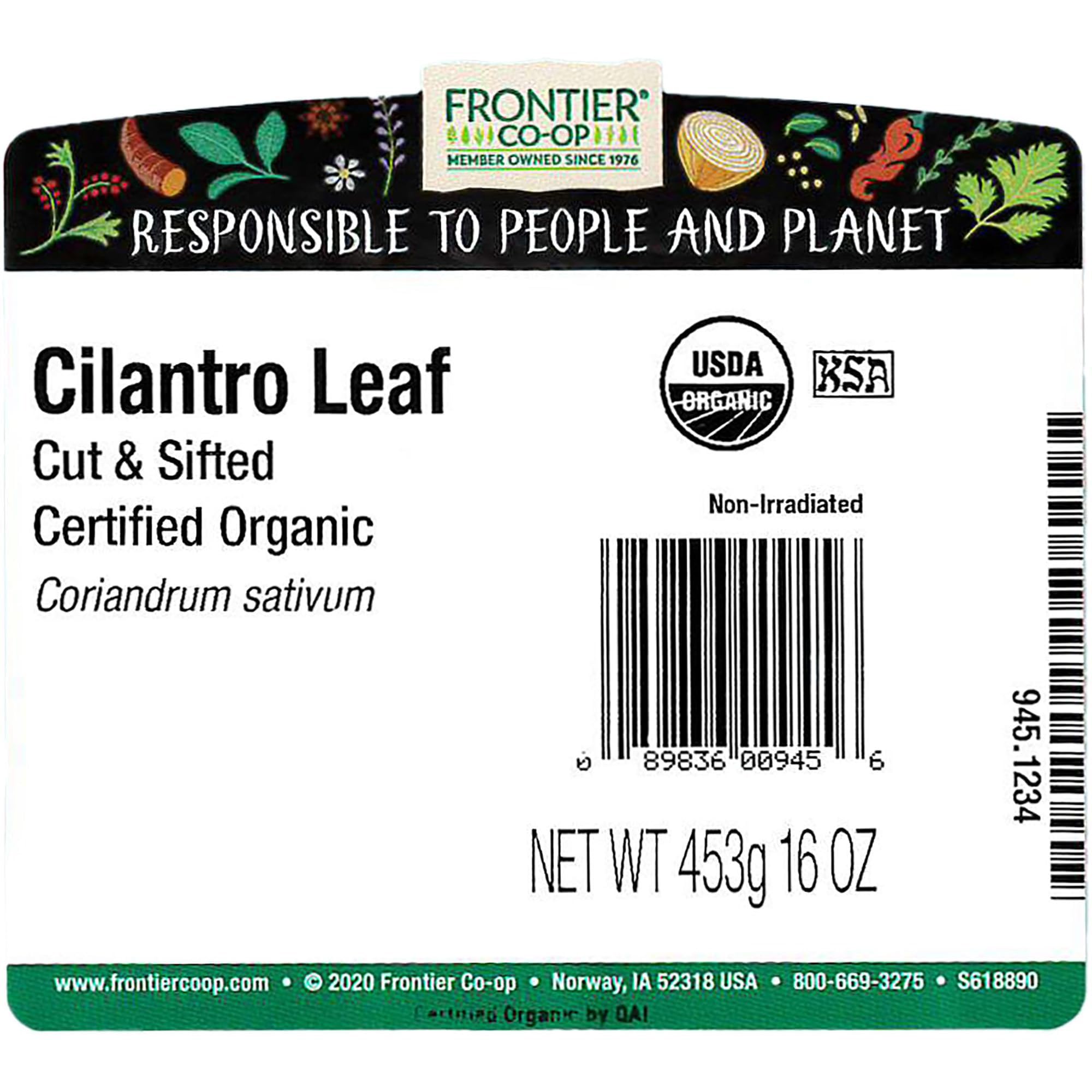 Frontier Co-op Organic Cilantro Leaf, Cut and Sifted, 1lb Bulk Bag - Dried Cilantro Seasoning - Perfect for Tea, Soups, Sauces, Salsa and More - Kosher
