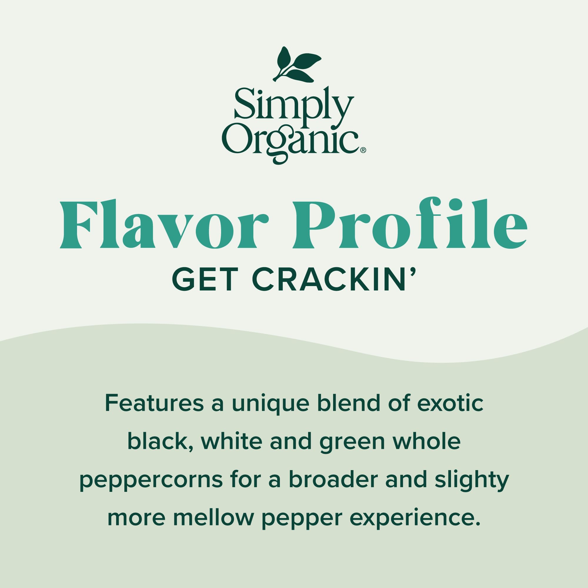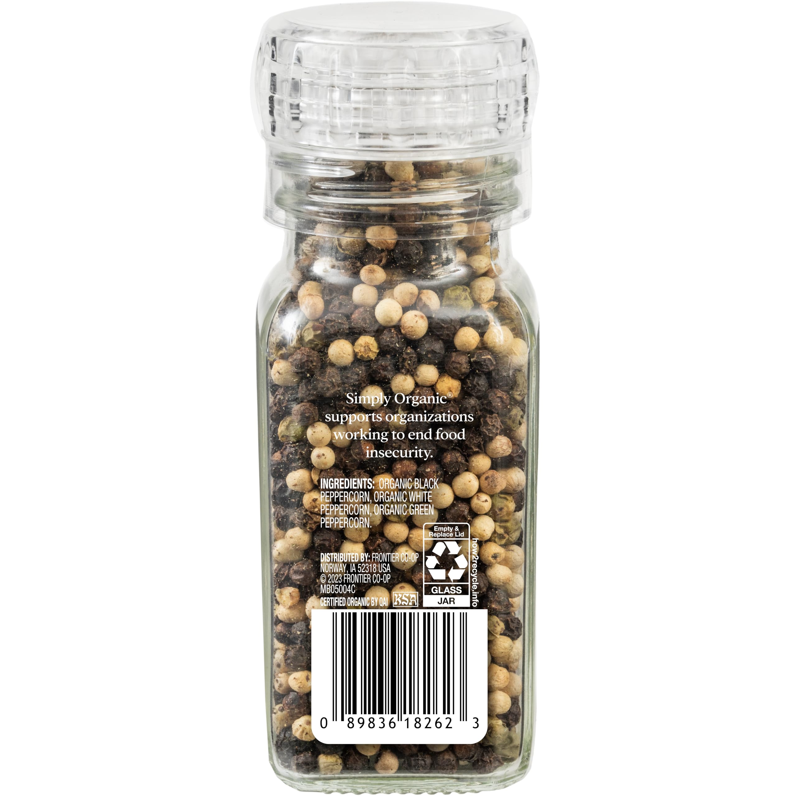 Simply Organic Whole Pepper Grinder, 3 Ounce Bottle, Blend of Black, White and Green Peppercorn for Complex Flavor