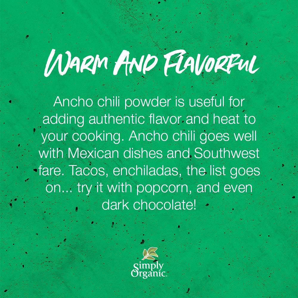 Simply Organic Ancho Chili Powder, Certified Organic | 2.85 oz | Pack of 3