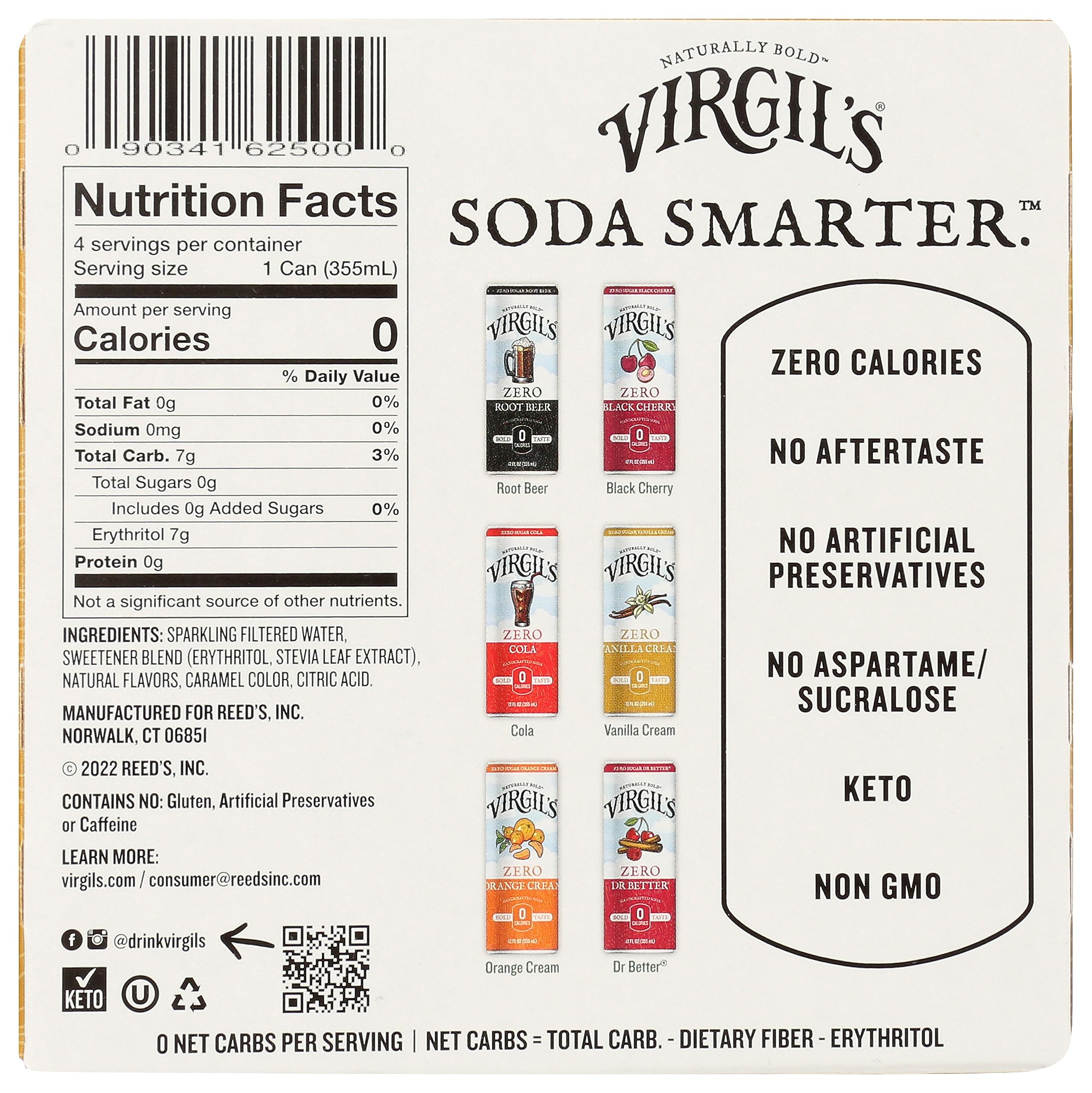 Virgil's Zero Sugar Vanilla Cream Soda, 4 Pack, Cans