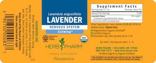 Herb Pharm Certified Organic Lavender Flower Liquid Extract for Calming Nervous System Support, 1 Fl Oz