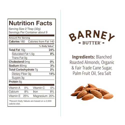 Barney Butter Almond Butter, Crunchy, 10 Ounce Jar, Skin-Free Almonds, No Stir, Non-GMO, Gluten Free, Keto, Paleo, Vegan