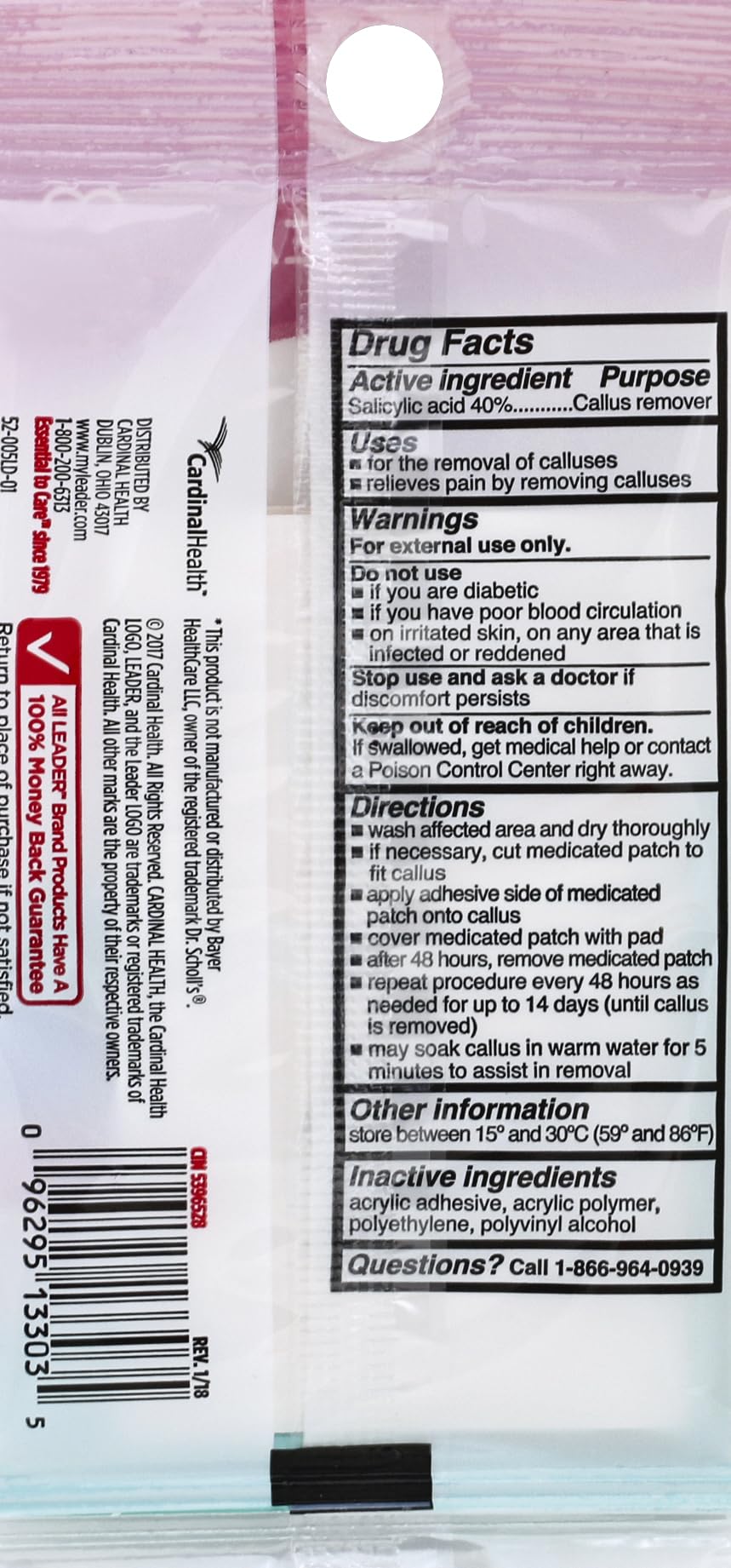 Leader Medicated Callus Remover with Salicylic Acid, Calluses & Toe Corn Treatment Pads/Patches, All-Day Pain Relief & Cushioning Protection Against Shoe Pressure and Friction, 6 Pads