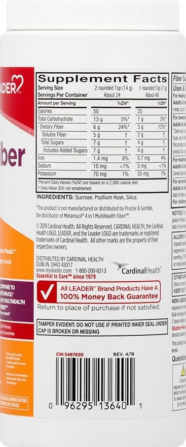 LEADER Psyllium Husk Powder Supplement 4-in-1 Fiber for Digestive Health, Plant Based 100% Natural Psyllium Husk Daily Fiber, Gluten Free, Non-GMO, Compare to Metamucil 20.3 OZ (Pack of 2)