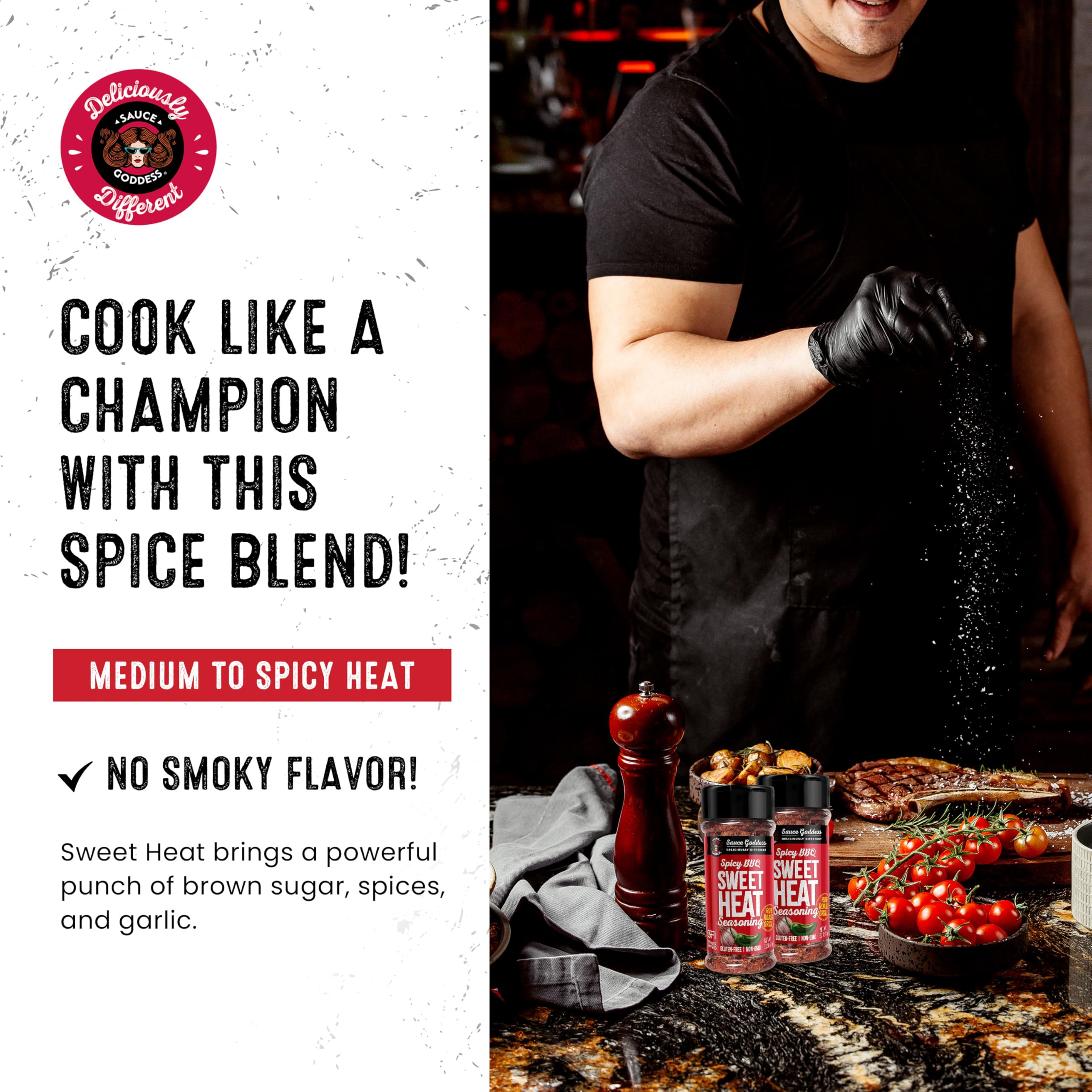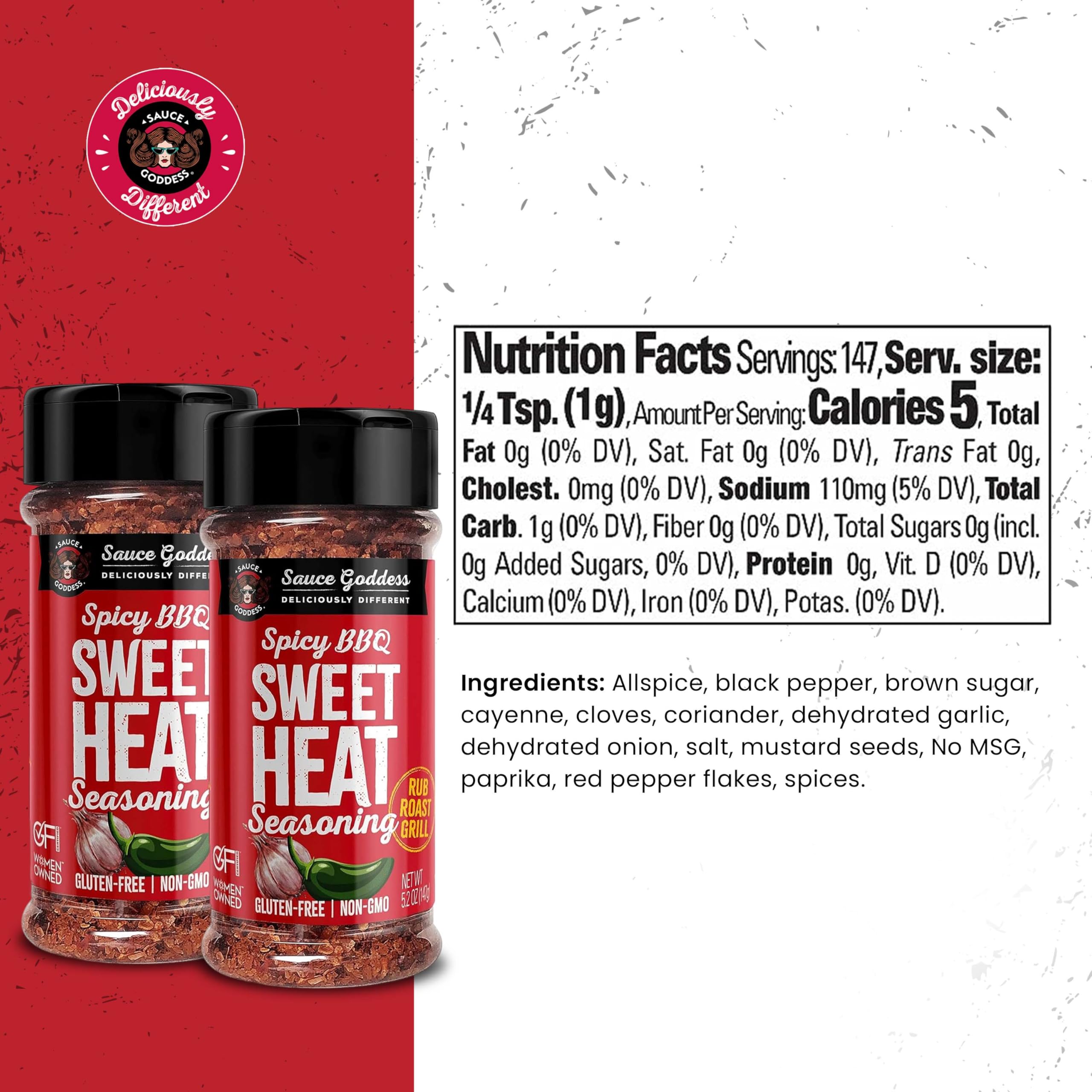 Sauce Goddess BBQ Sweet Heat Spice Shaker (2-Pack) - BBQ Rub with Brown Sugar and Has a Nice Garlic Flavor. Combination of Spicy and Sweet Seasonings and Spices for Cooking