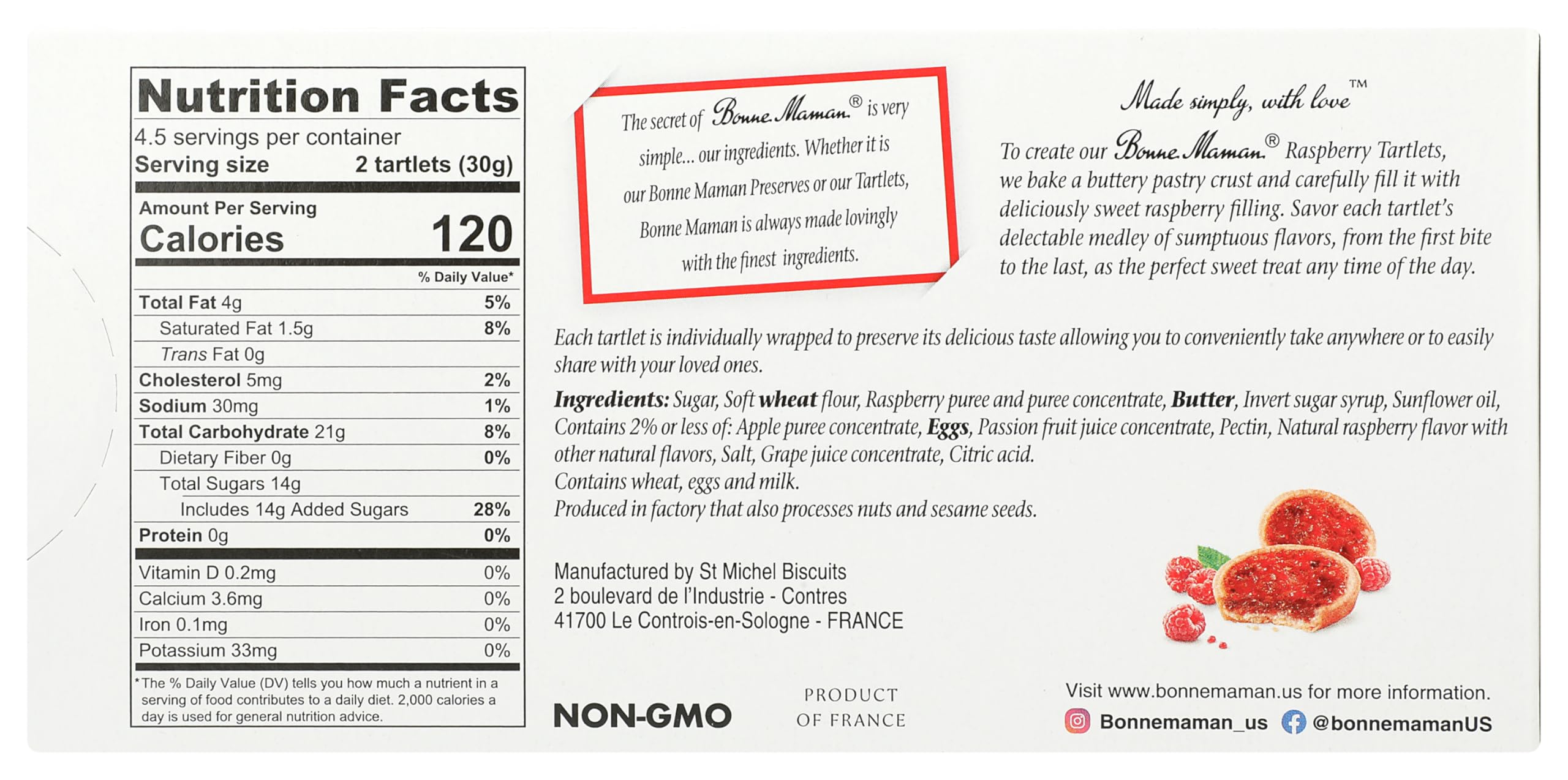 Bonne Maman Tartlets Raspberry is a premium product made with quality ingredients. A versatile pantry staple perfect for a variety of culinary uses.