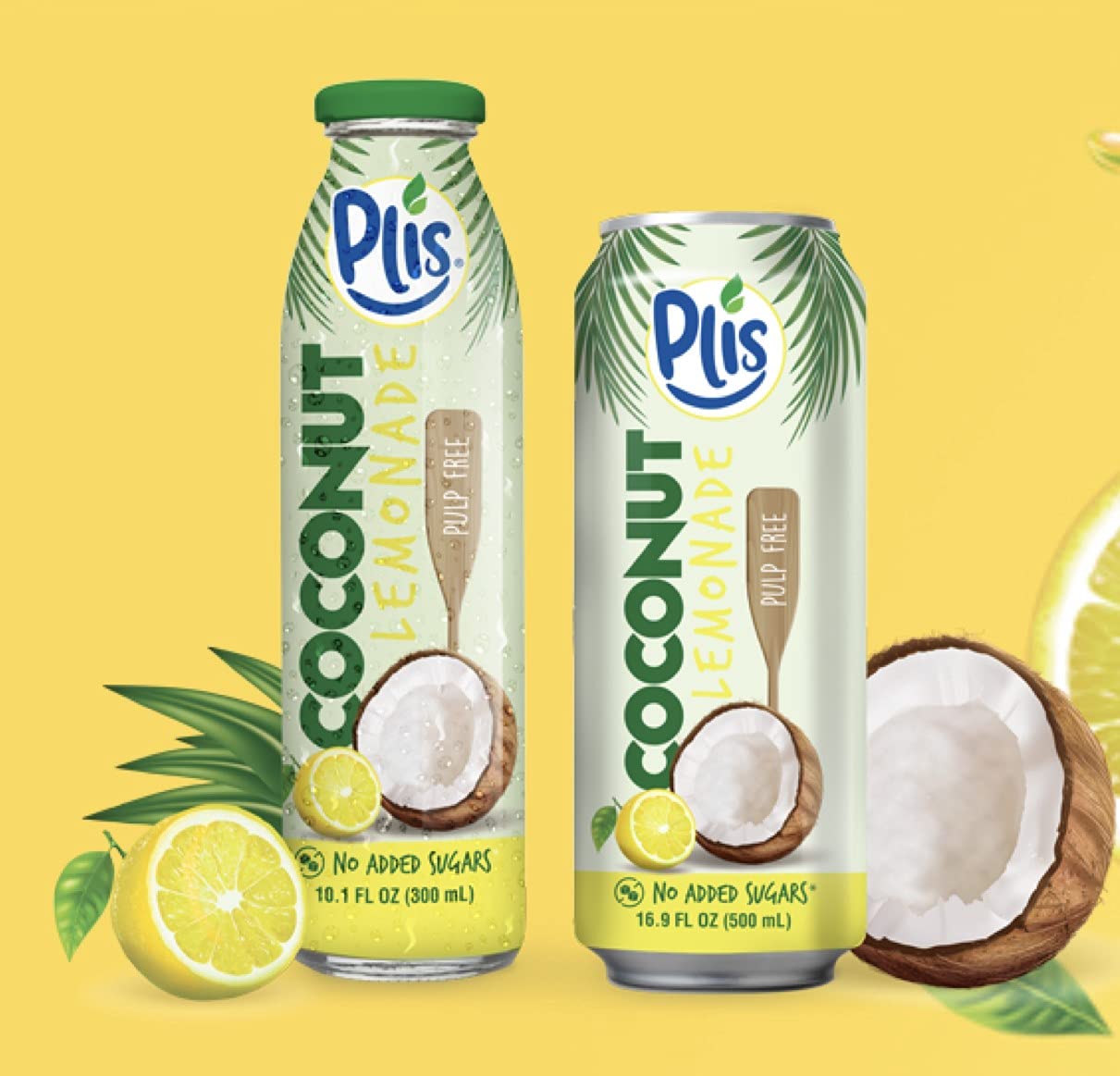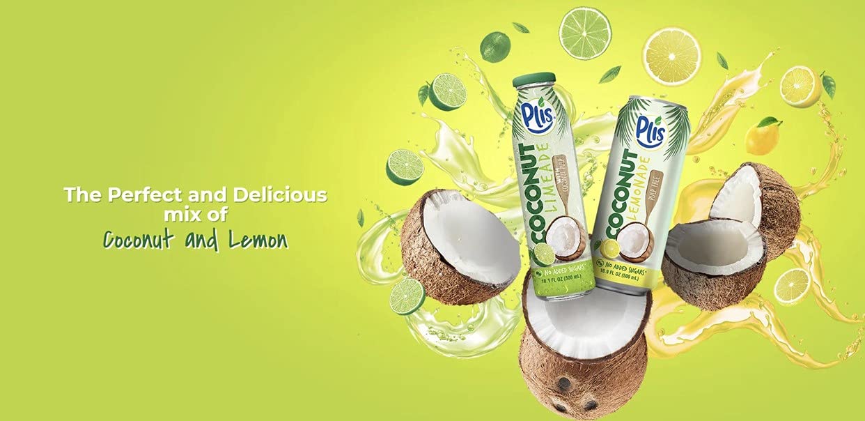 Coconut water, Coconut limeade and coconut lemonade, Natural juice and natural coconut pack of 2, 300 ml each glass bottle. (Lemon, 2 pack)