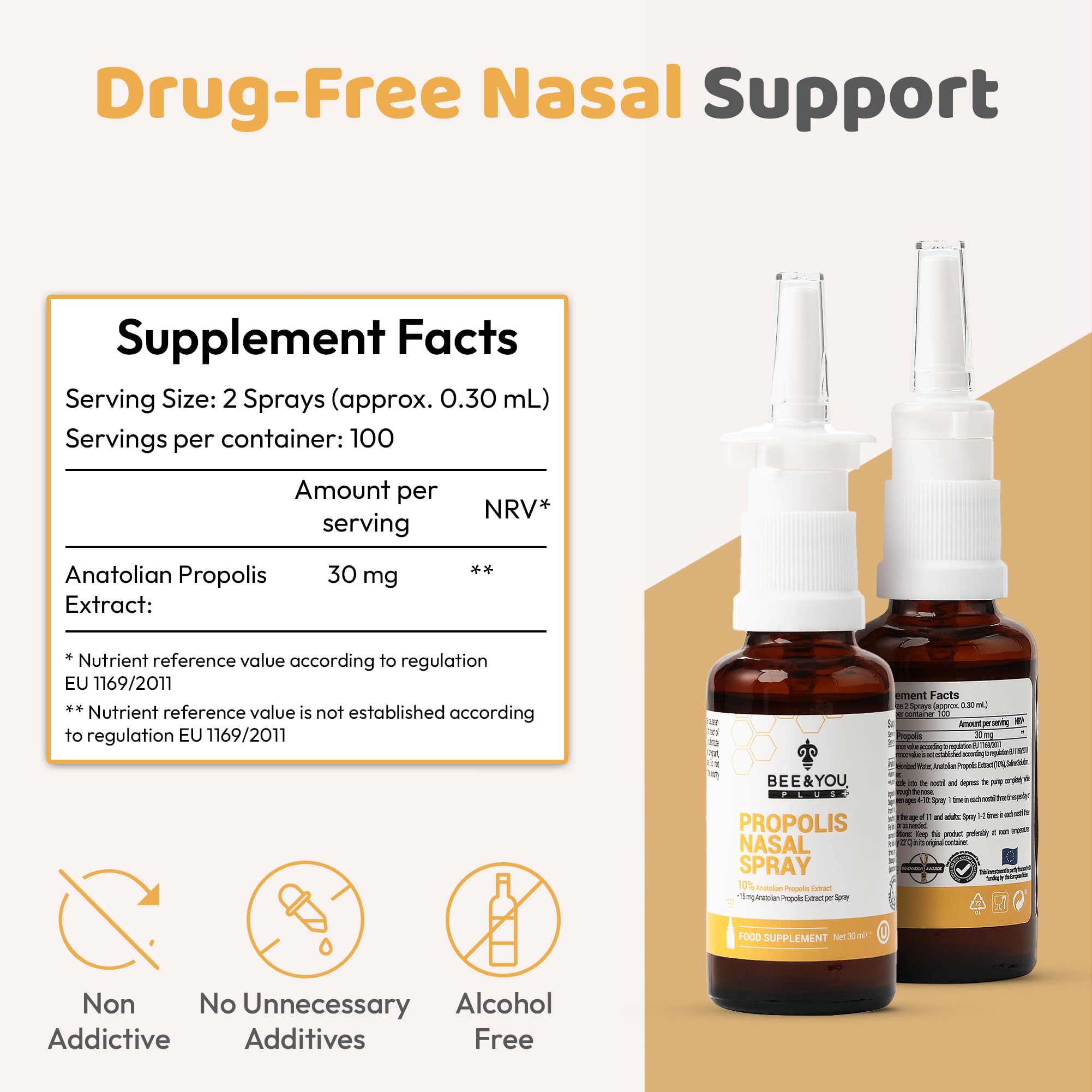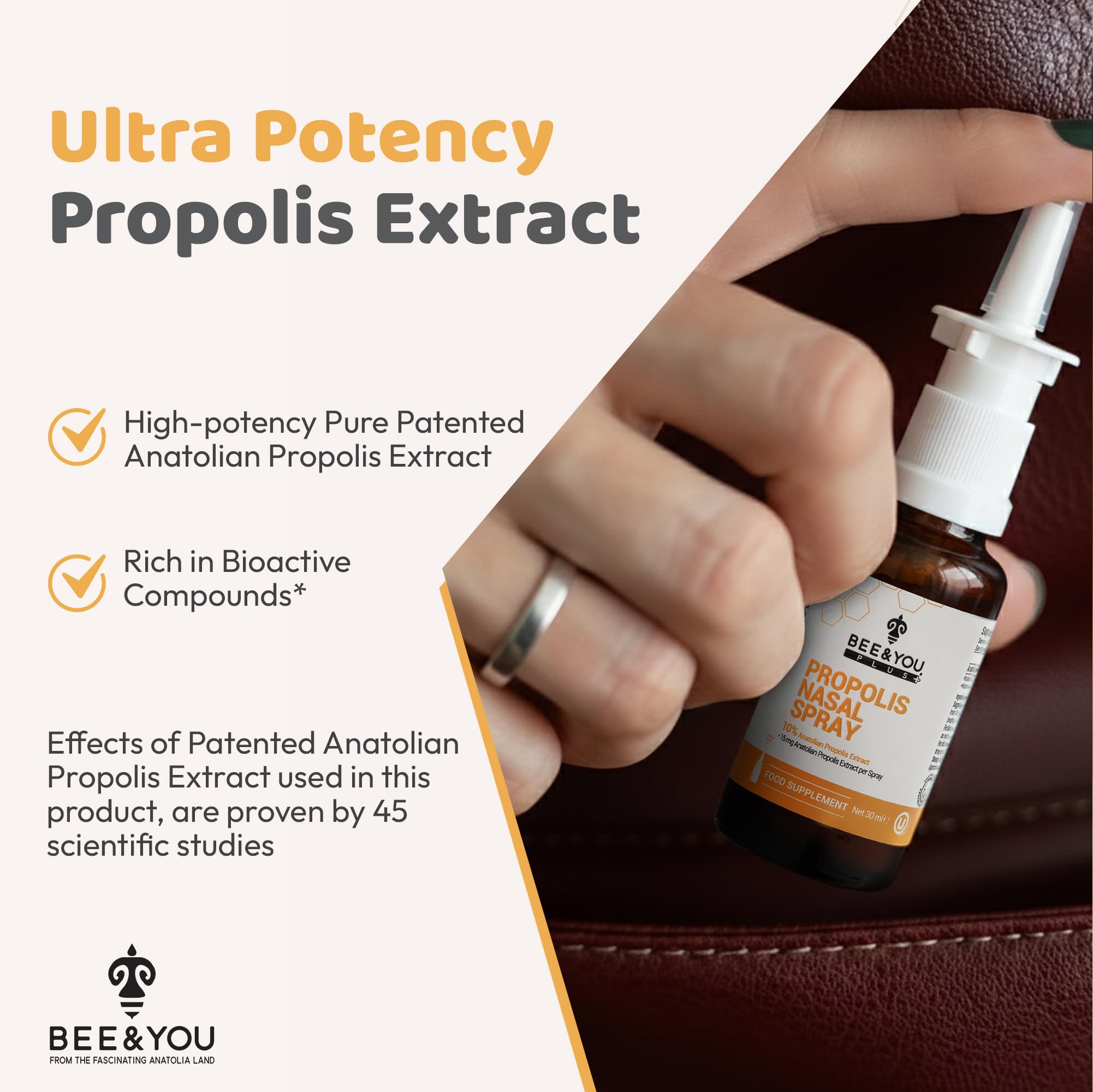 BEE and You Plus Natural Propolis Nasal Spray 1 Fl oz | Congestion Relief Drug Free & Alcohol Free, Sinus Relief, Allergy, Nasal Moisturizing Spray