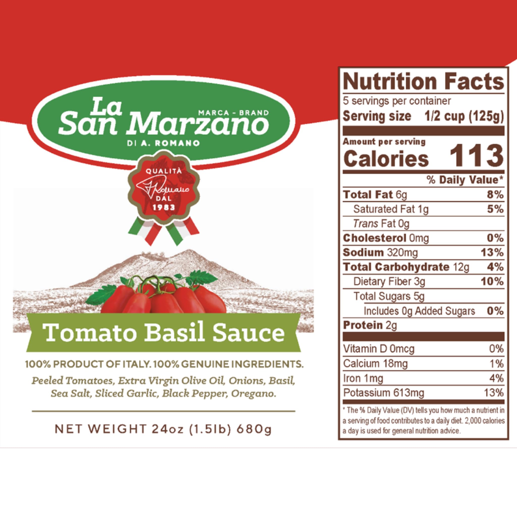 La San Marzano Tomato Basil Sauce, 24 oz, Pasta Sauce Made in Italy, All Purpose Tomato Premium Quality, All Natural, Mediterranean Diet, Non GMO, Vegan, Gluten Free
