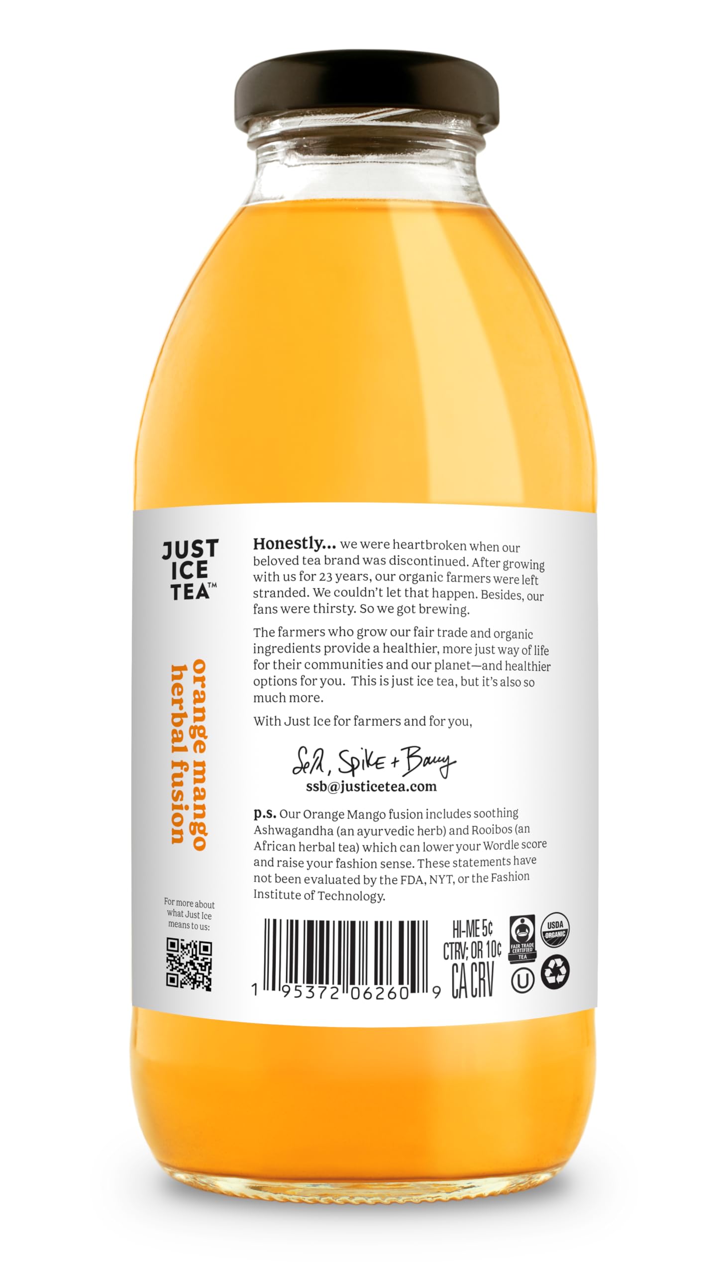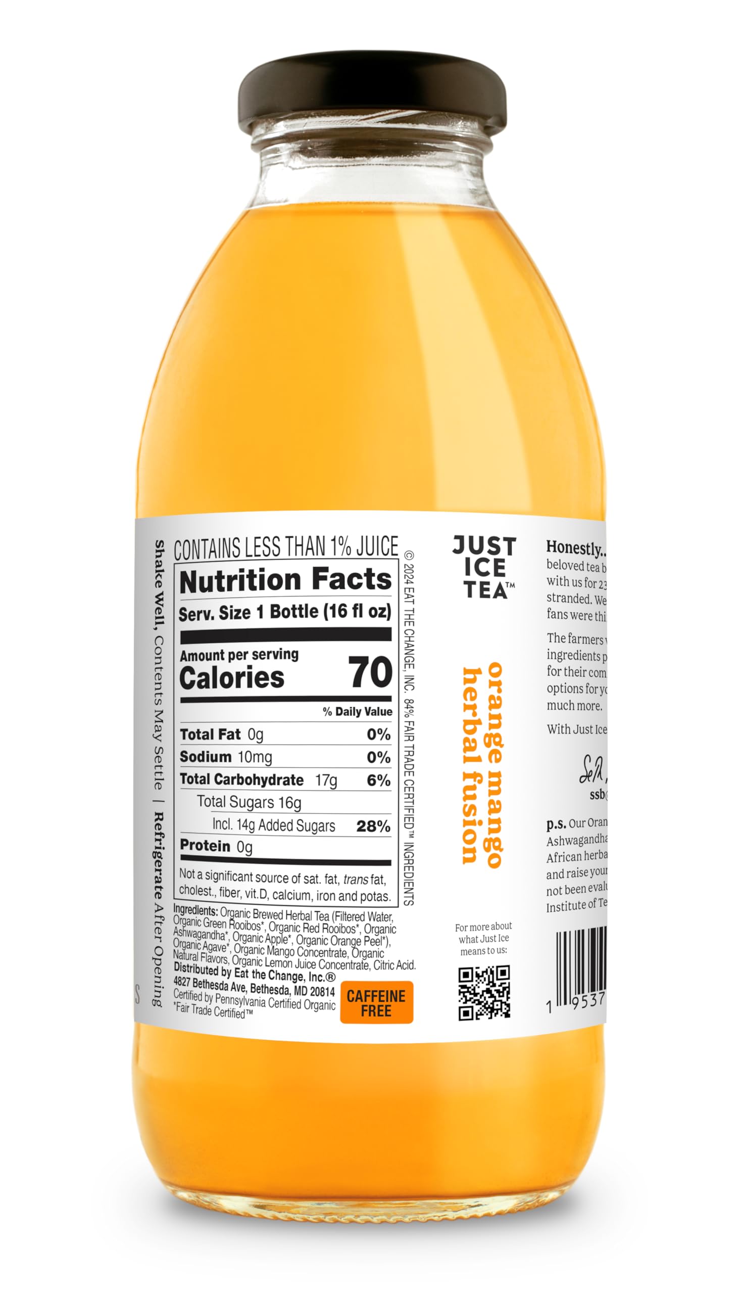 Just Ice Tea Organic Herbal Fusion Orange Mango, 16 Fl Oz