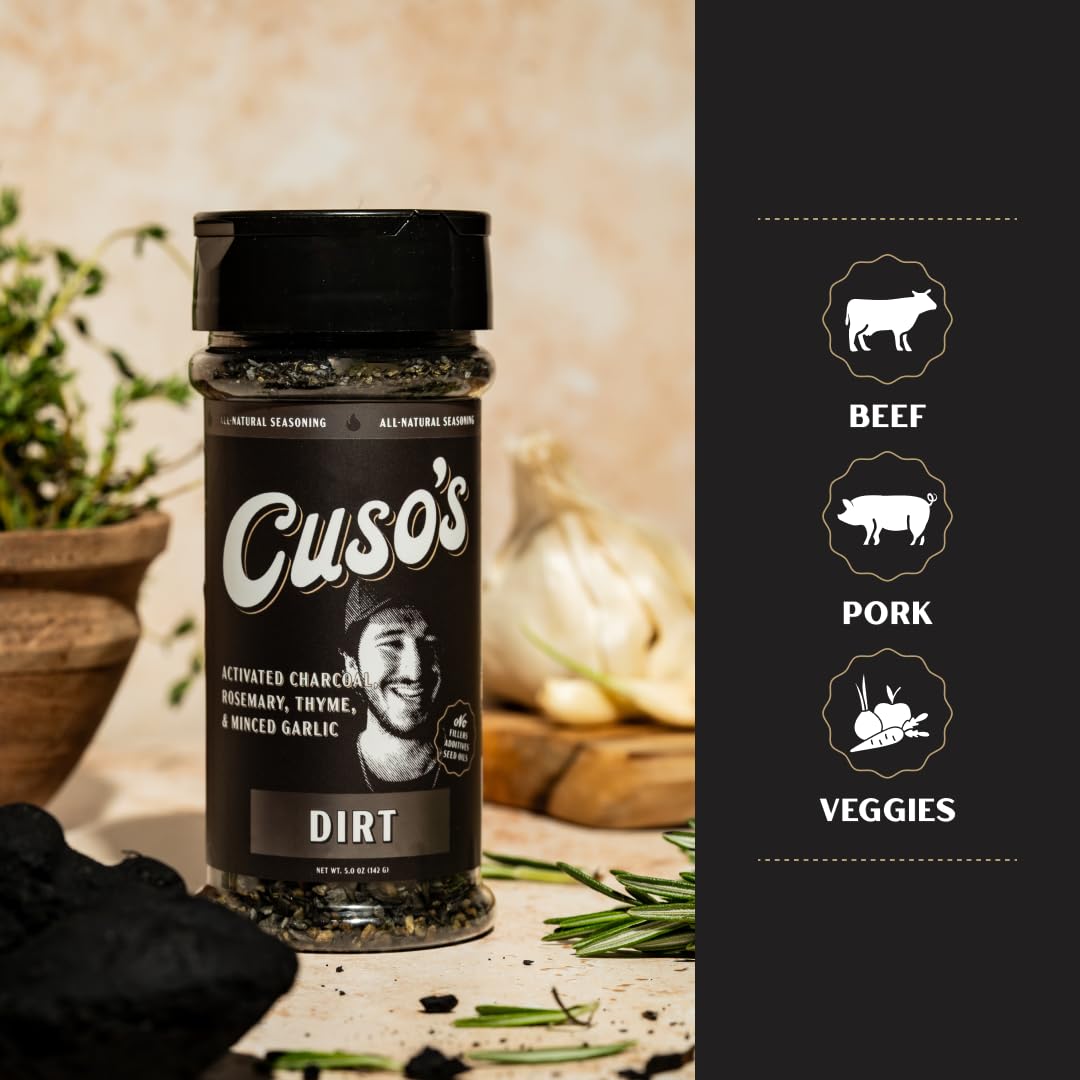 Cuso’s Dirt® BBQ Seasoning - Dirt Rub - Bold Steak & Brisket Seasoning for Smoking - Dry Rub for Meat - Steak Seasonings, Beef Rubs for Smoking & BBQ - 5 oz bottle