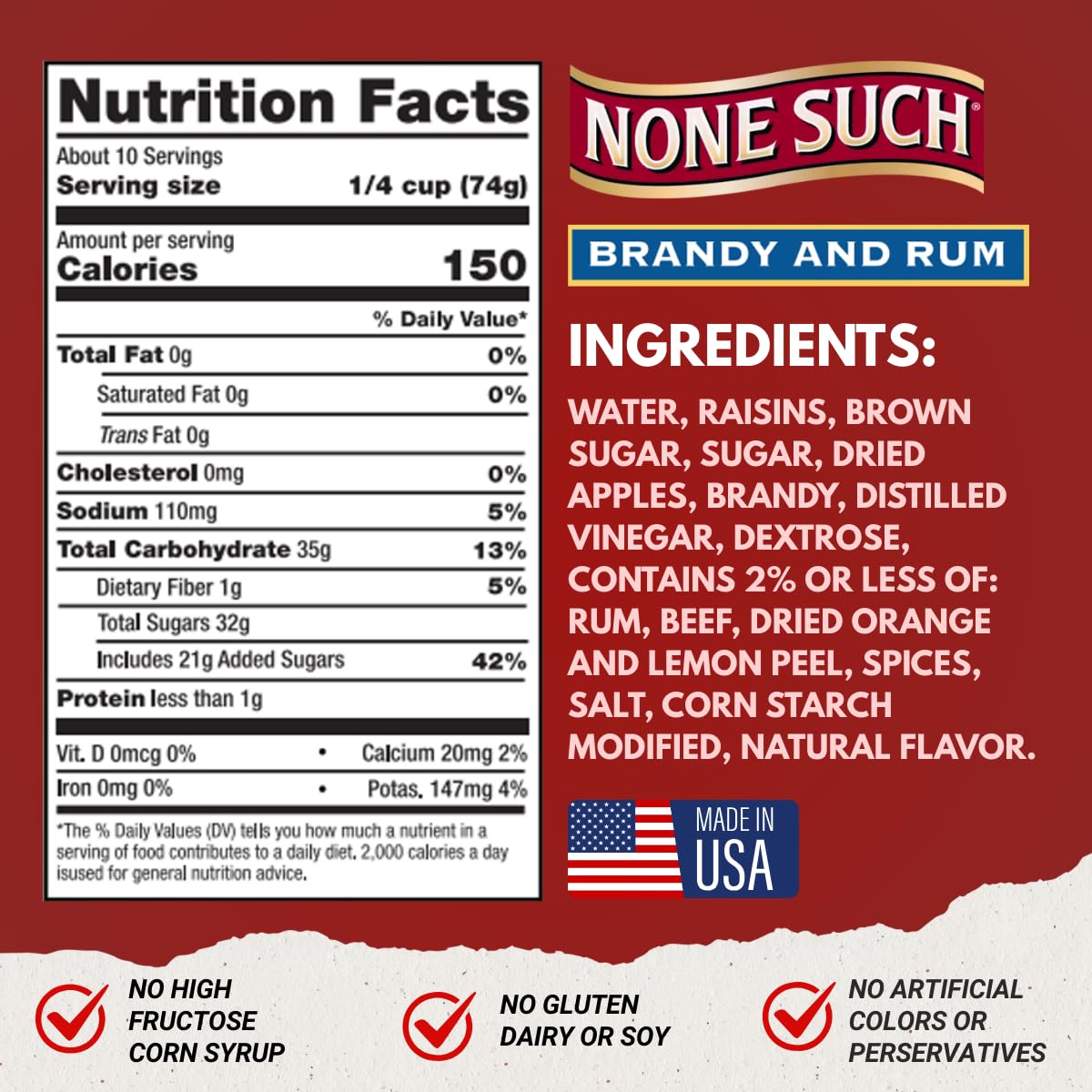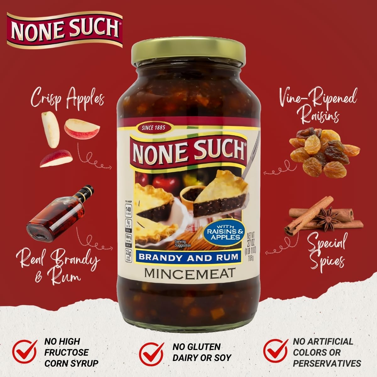 None Such Mincemeat Brandy & Rum - Pie Filling with Apples and Raisins, 27 Ounce (Pack of 1)