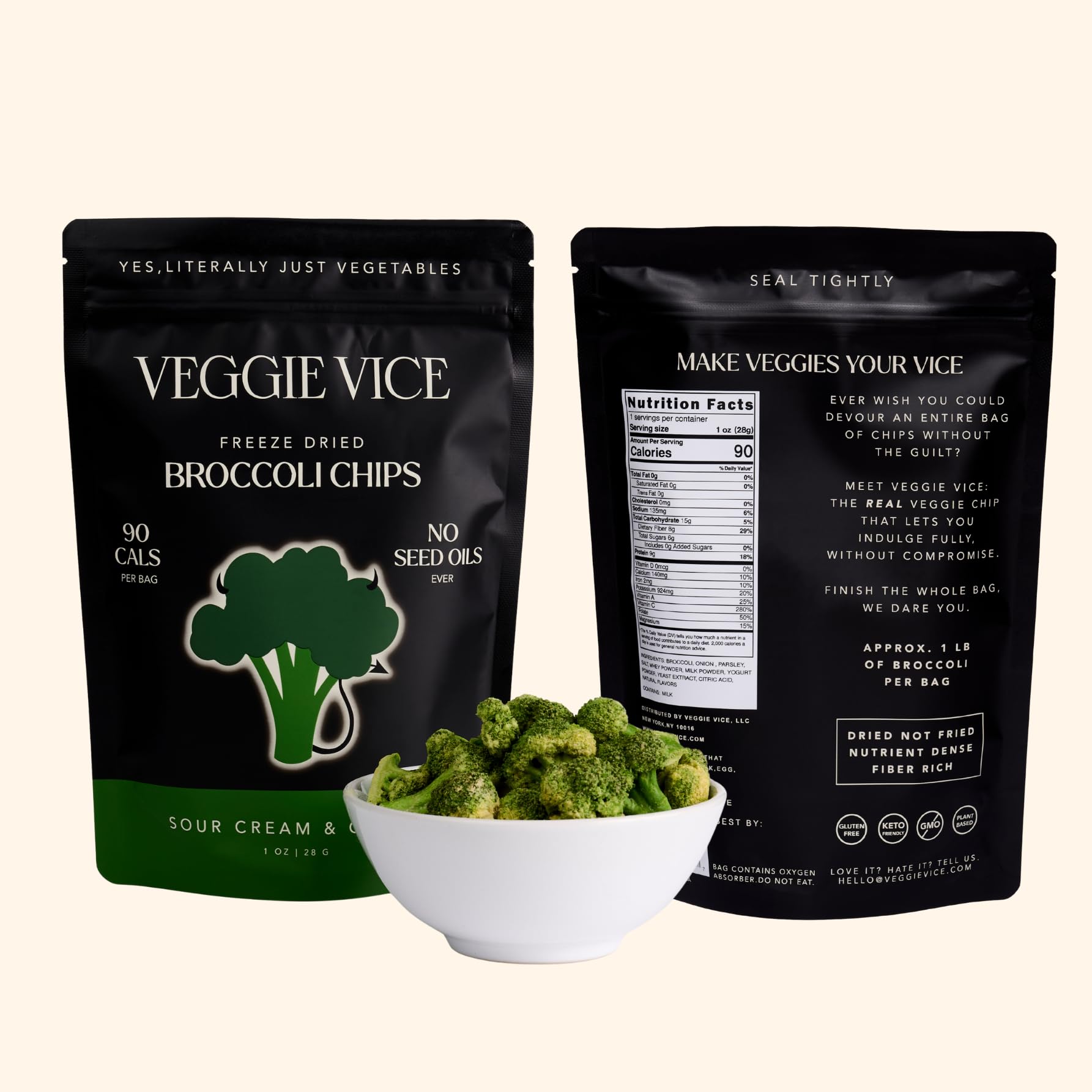 Veggie Vice Sour Cream and Onion Freeze Dried Broccoli Chips, No Oils or Starches, Use for Snacking, Salads, and Much More(1 Pouch, Sour Cream and Onion Broccoli)