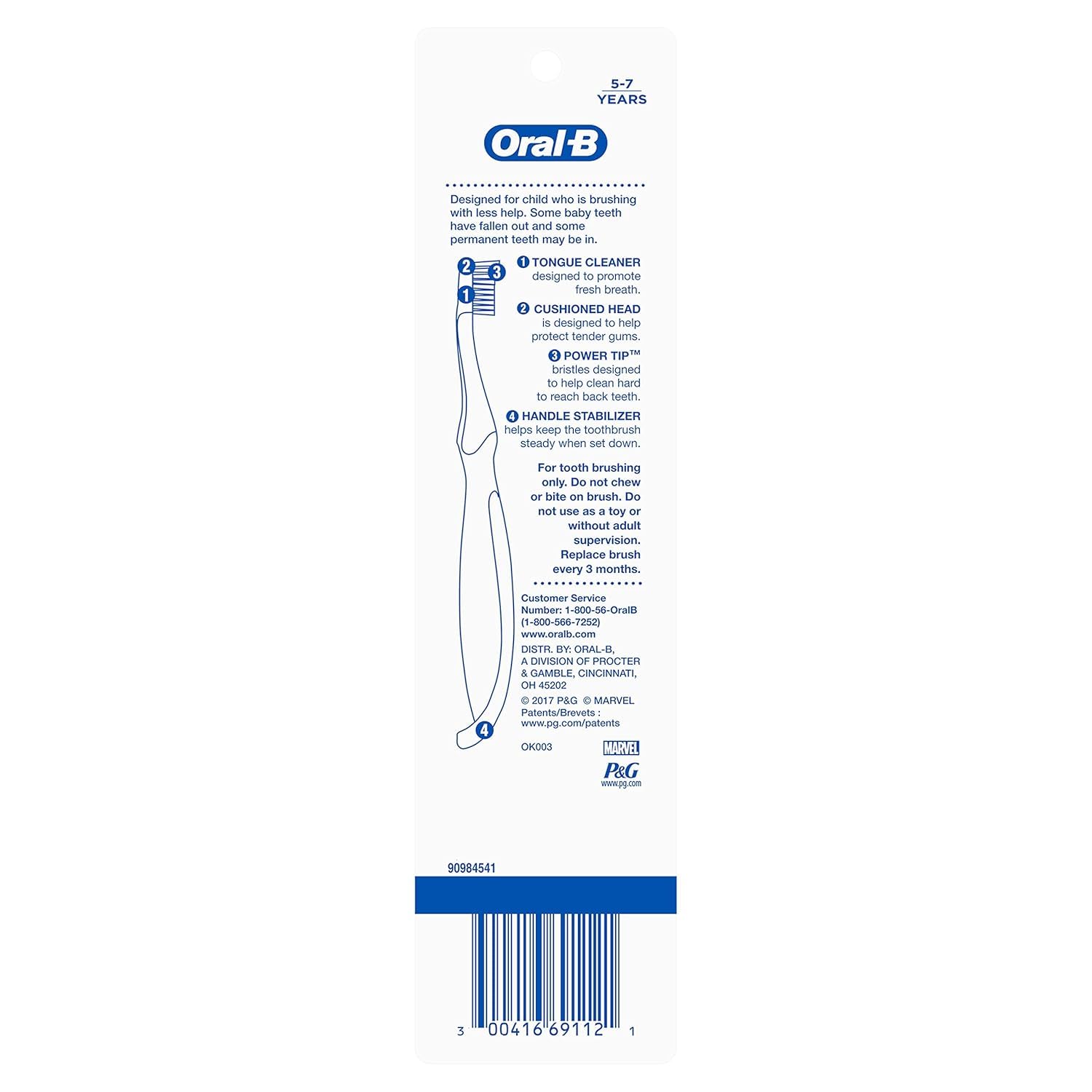 See Their Smile Grow. These Oral-B Kid’s Manual Toothbrushes featuring Marvel's Spiderman are the perfect kid’s toothbrush for your own little crime fighter. They are designed with features to support healthy oral hygiene such as a tongue cleaner, and soft Power Tip bristles to clean hard to reach teeth. Choose Crest and Marvel’s Spiderman to help your little ones practice proper oral care habits that will last them a lifetime. Oral-B, the brand more dentists use themselves worldwide. Charactres may vary.