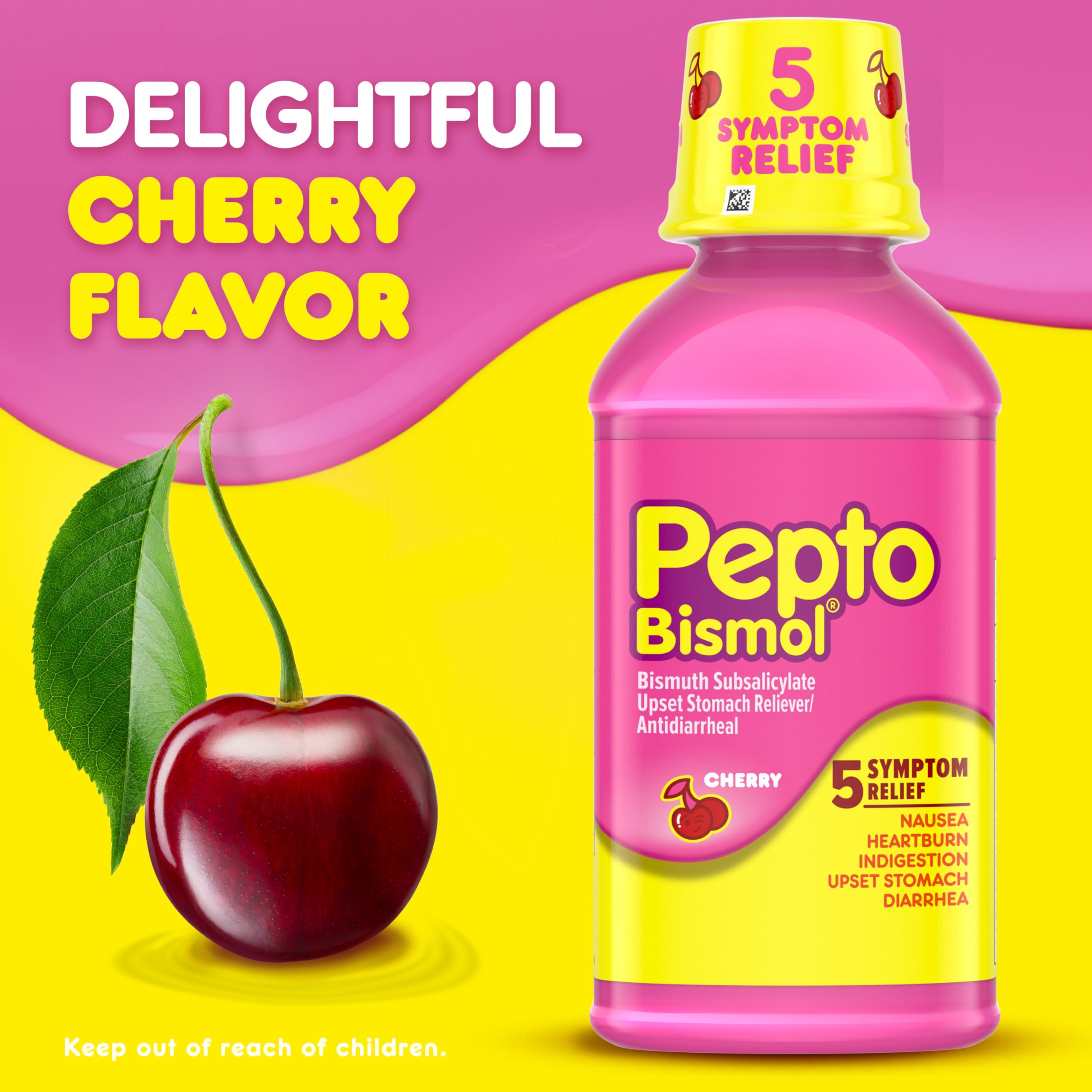 Pepto-Bismol Cherry Liquid 5 Symptom Relief including Upset Stomach & Diarrhea 12 Oz (Pack of 3) (OLD)