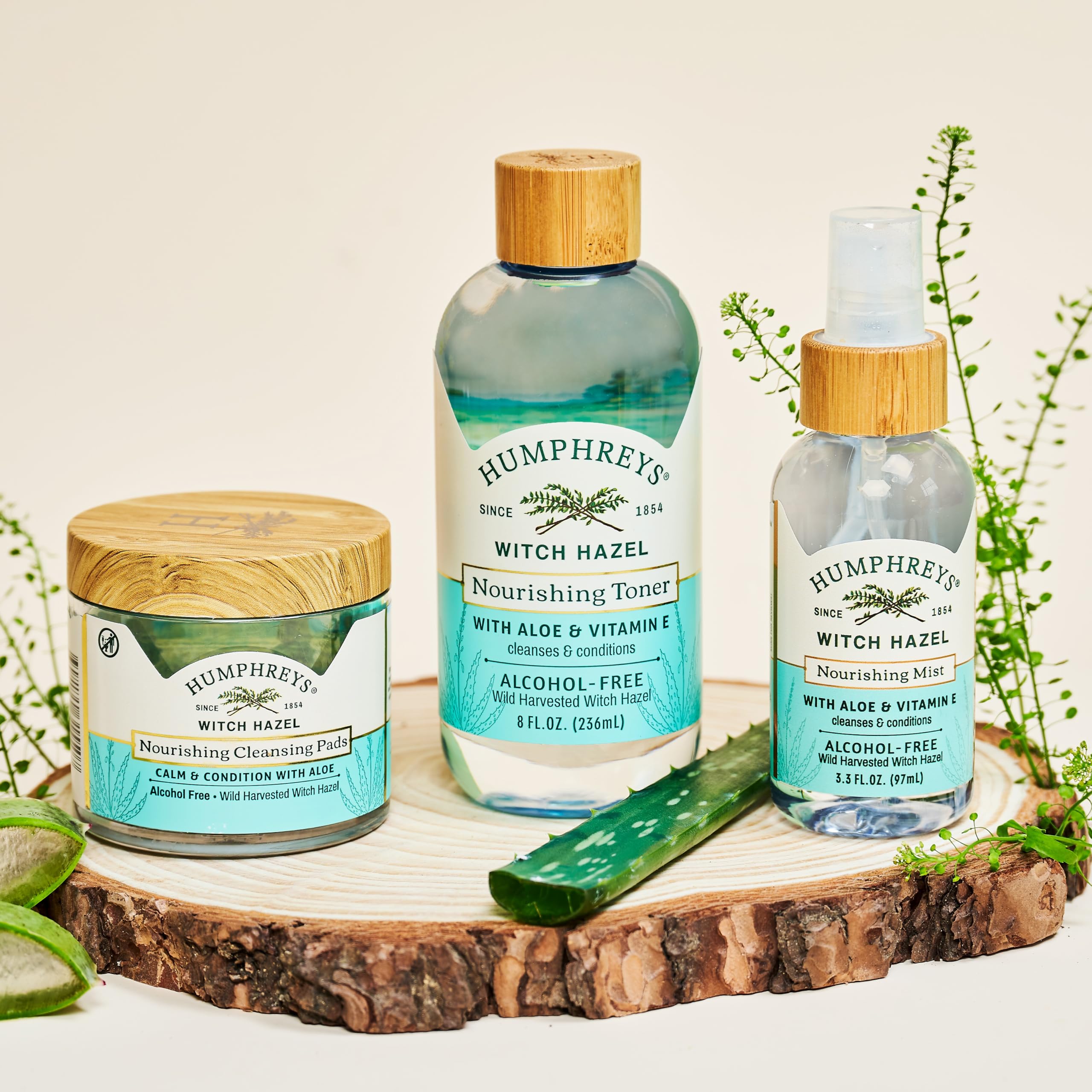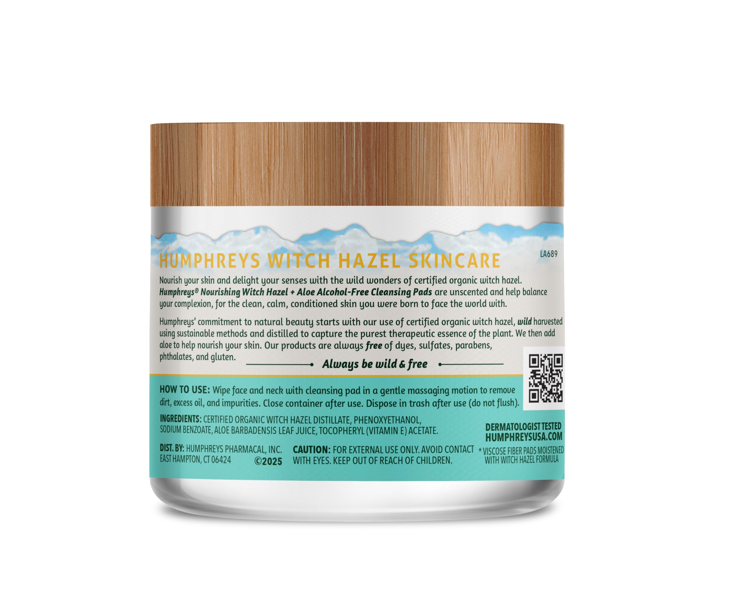 Nourish your skin and senses with certified organic witch hazel. Humphreys Nourishing Witch Hazel + Aloe Alcohol Free Cleansing Pads are unscented and help balance your complexion for the clean, calm, conditioned skin you were born to face the world with. Humphreys' commitment to natural beauty starts with our use of certified organic witch hazel, wild harvested using sustainable methods and distilled to capture the purest therapeutic essence of the plant. Our products are always free of dyes, sulfates, parabens, phthalates, and gluten.
