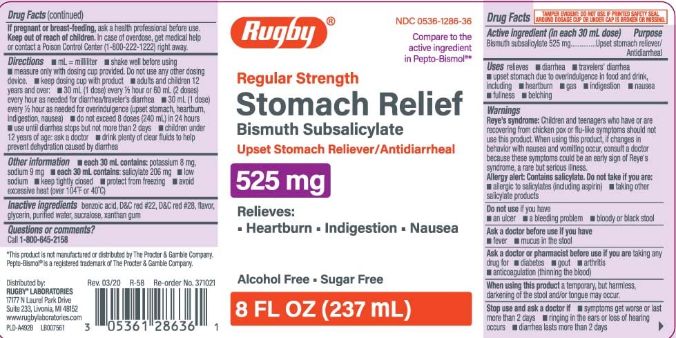 Rugby Regular Strength Upset Stomach Reliever/Antidiarrheal Bismuth Subsalicylate 525 mg - 8 Fl Oz - Relief for Heartburn, Indigestion, Nausea