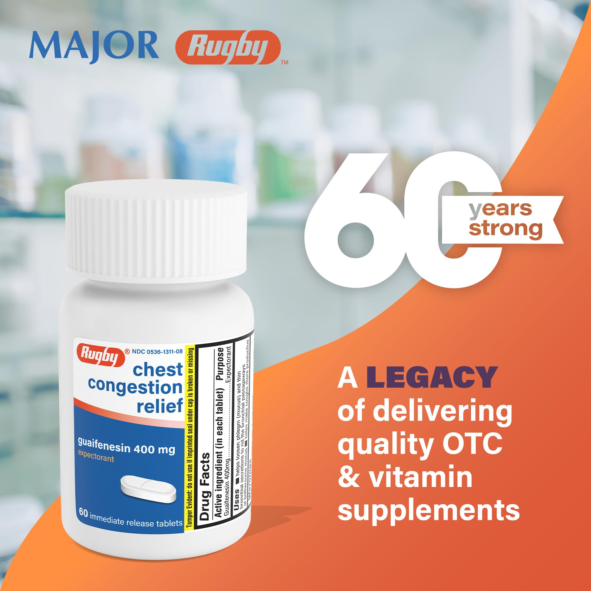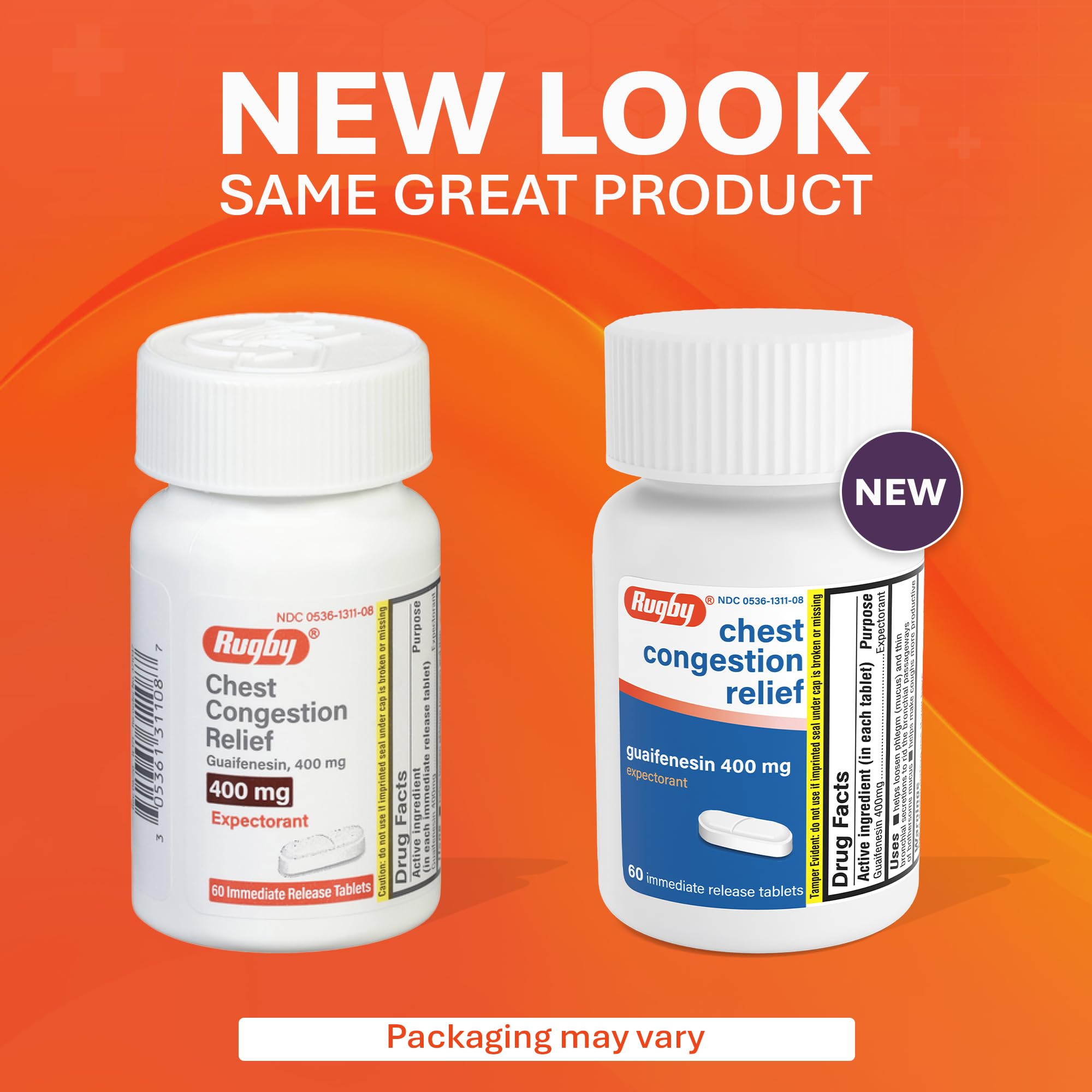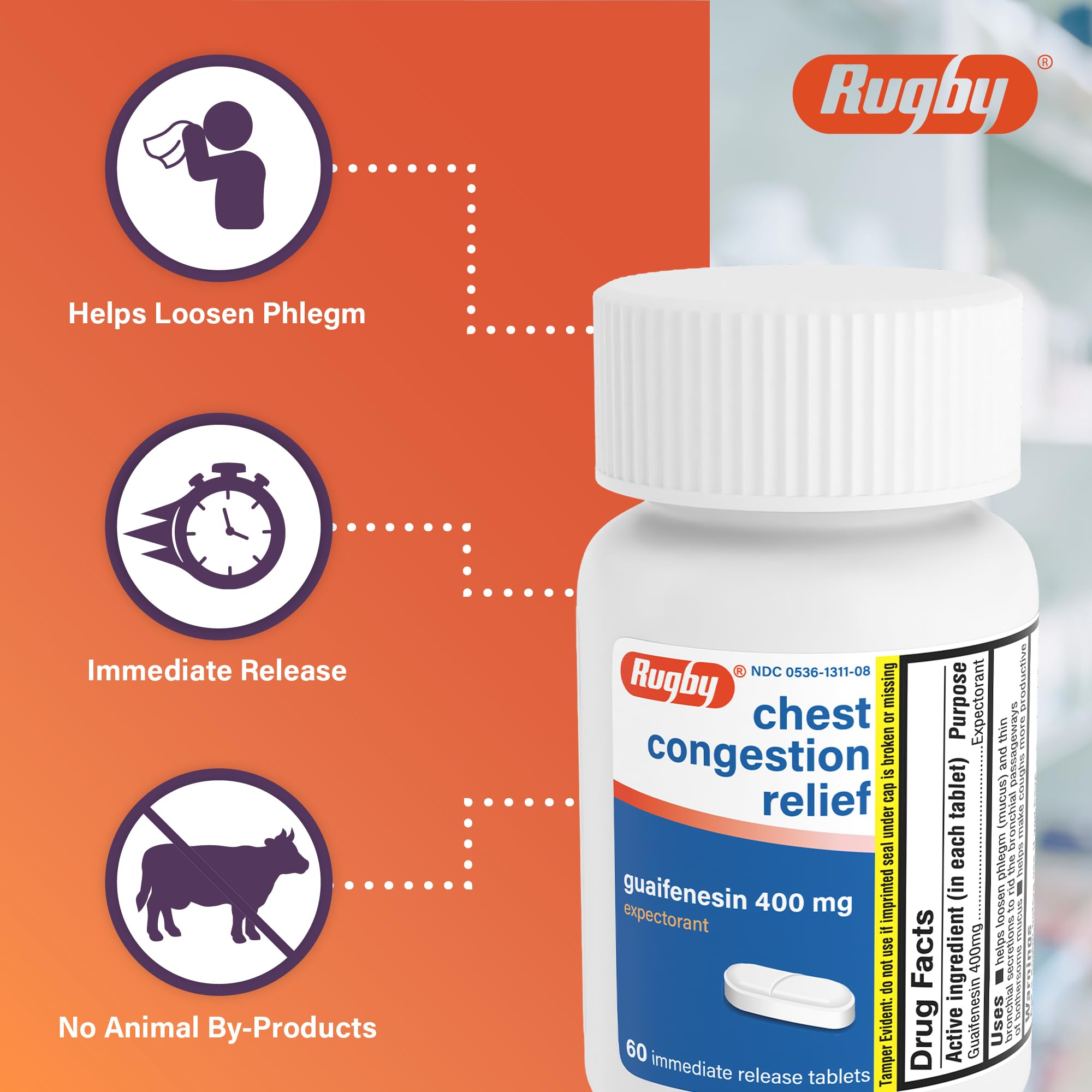 Rugby Chest Congestion Relief - Guaifenesin 400 Mg - Expectorant - 60 Immediate Release Tablets