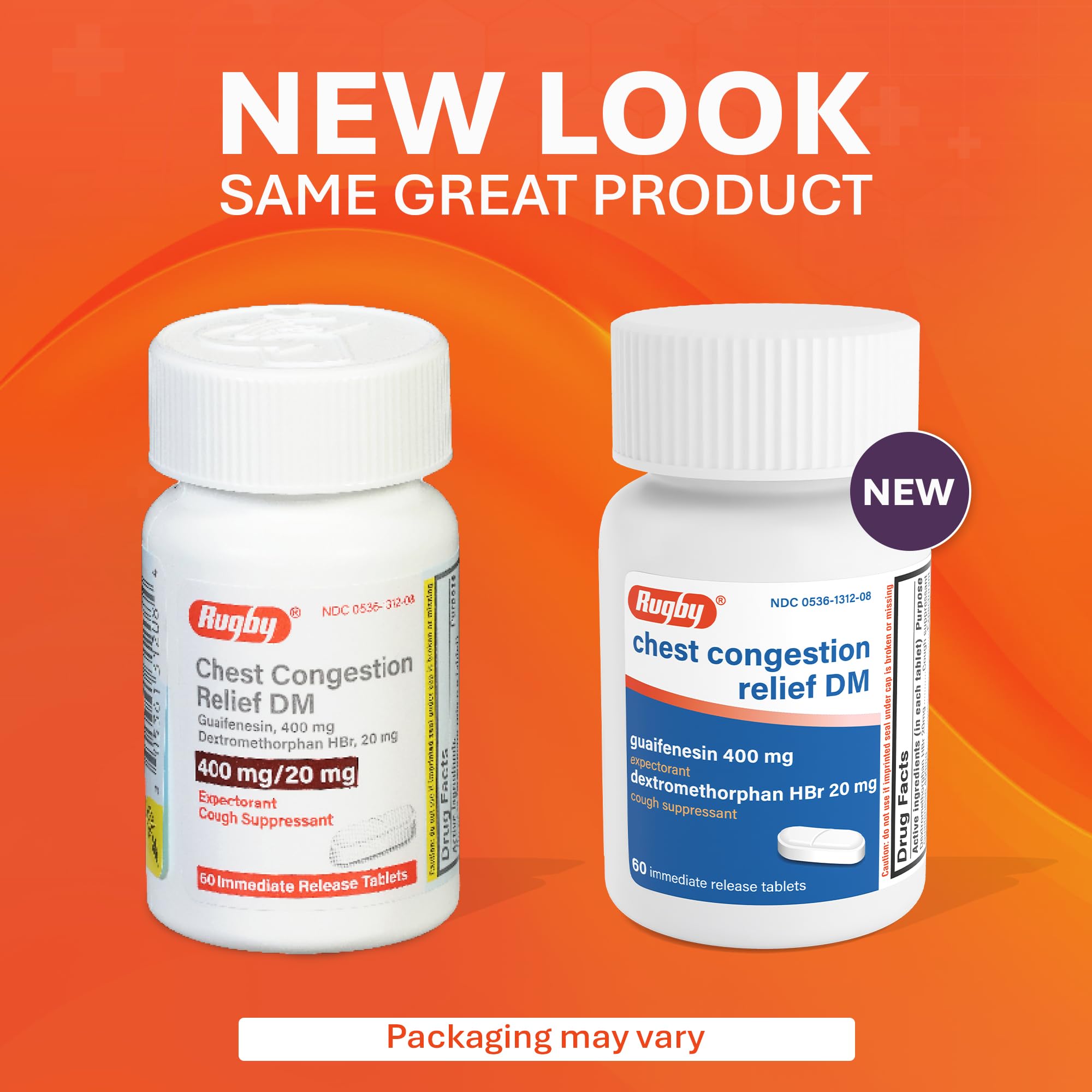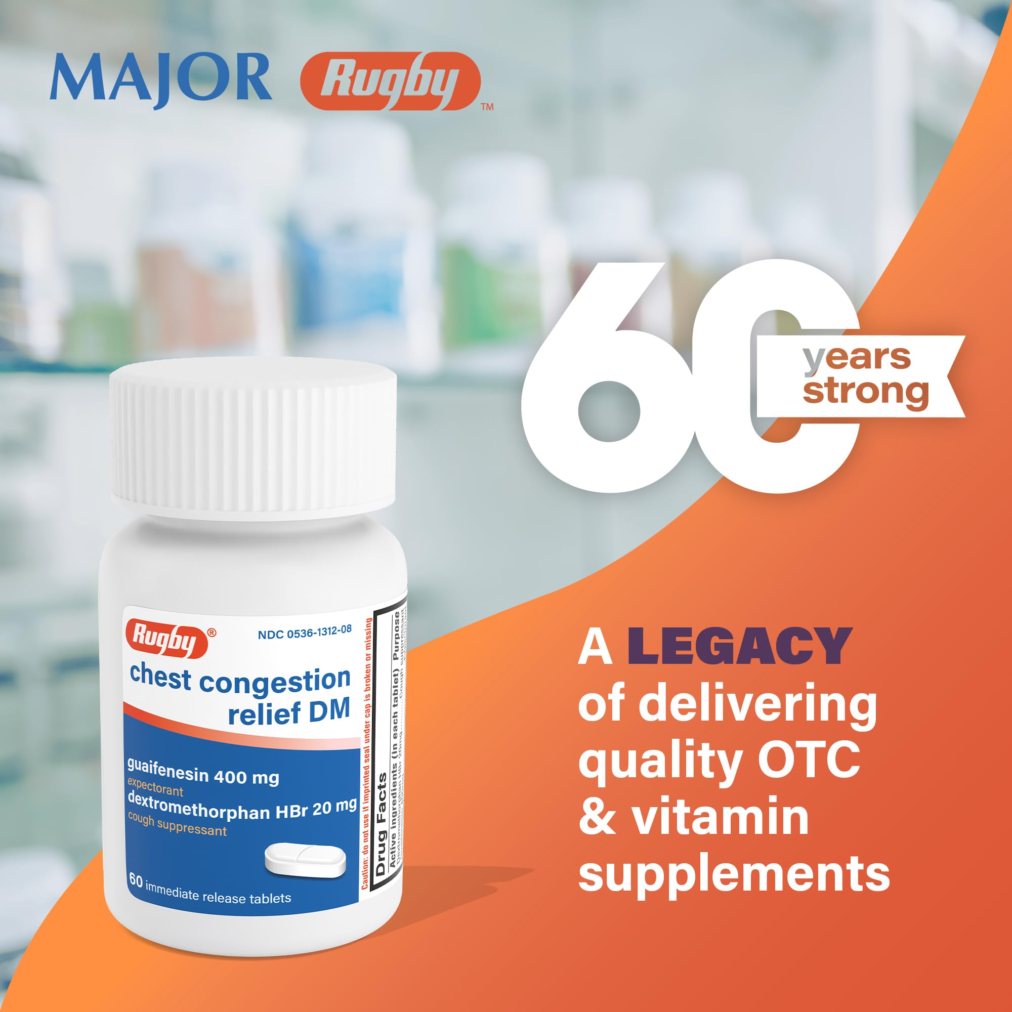 Rugby Chest Congestion Relief DM - Guaifenesin 400mg - Dextromethorphan HBr 20mg - Expectorant Cough Suppressant - 60 Immediate Release Tablets (1 Pack)