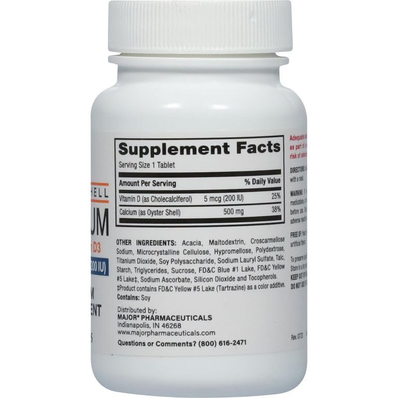 Major Oyster Shell Calcium with Vitamin D3 500 mg / 5 mcg (200 IU) - Calcium Supplement - 60 Tablets