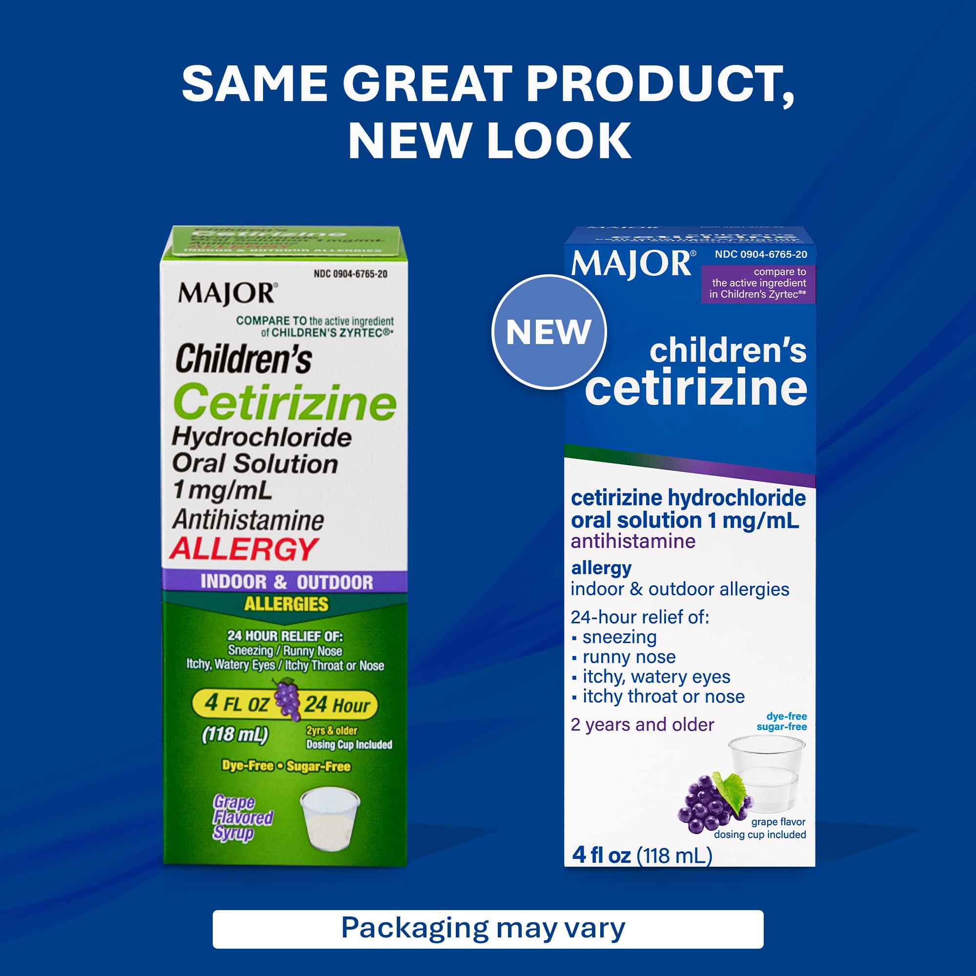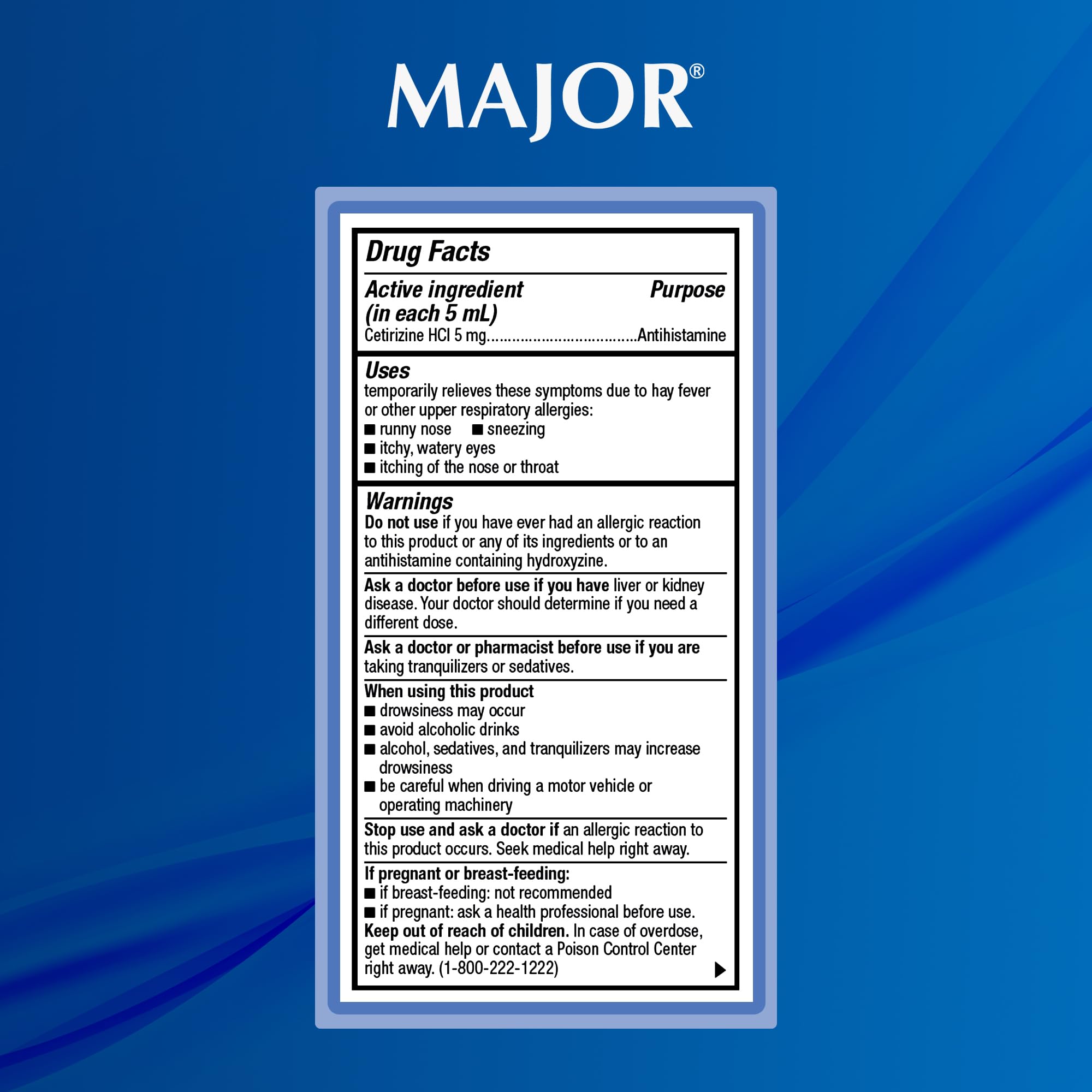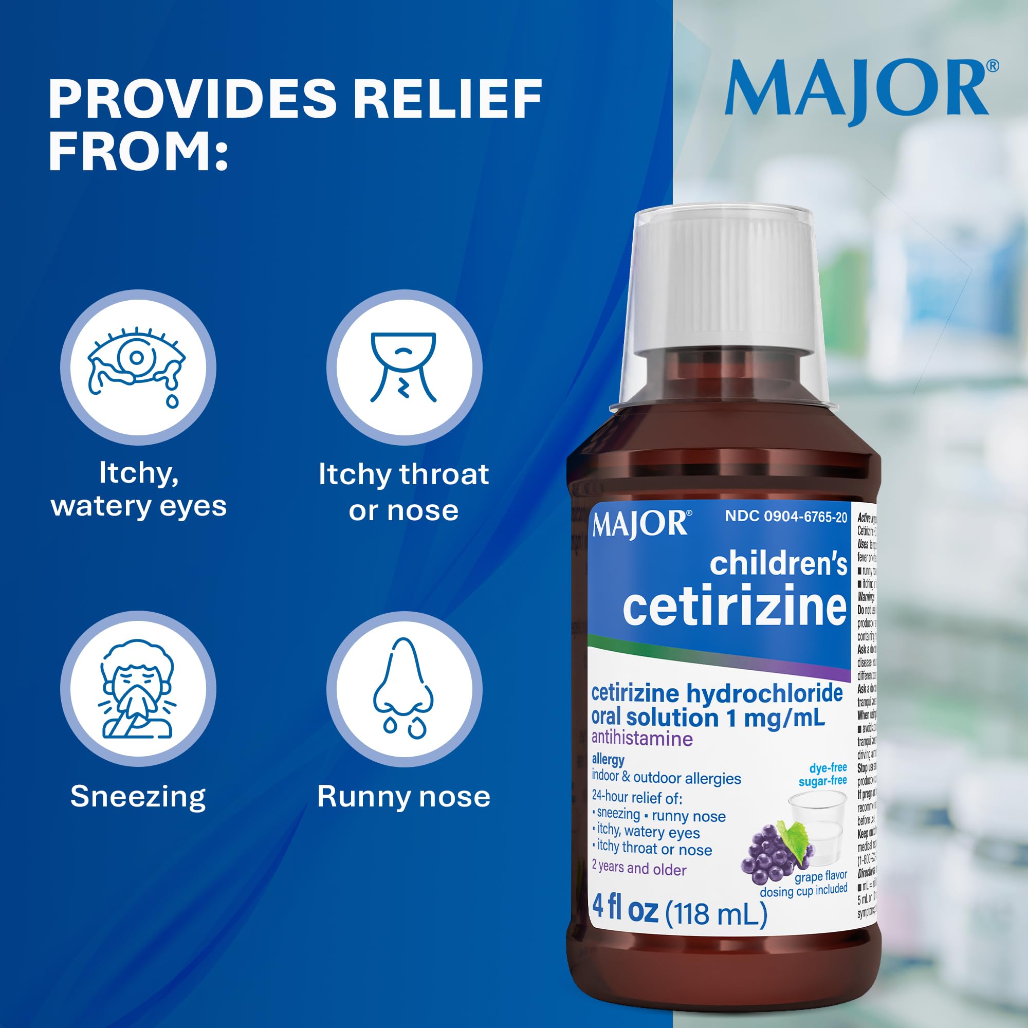 Major Children's Cetirizine 5 mg Antihistamine, Grape-Flavored Allergy Relief Liquid for Sneezing, Runny Nose, Itchy Watery Eyes & Itchy Throat, 24-Hour Indoor & Outdoor Relief - 4 Fl Oz (1 Pack)