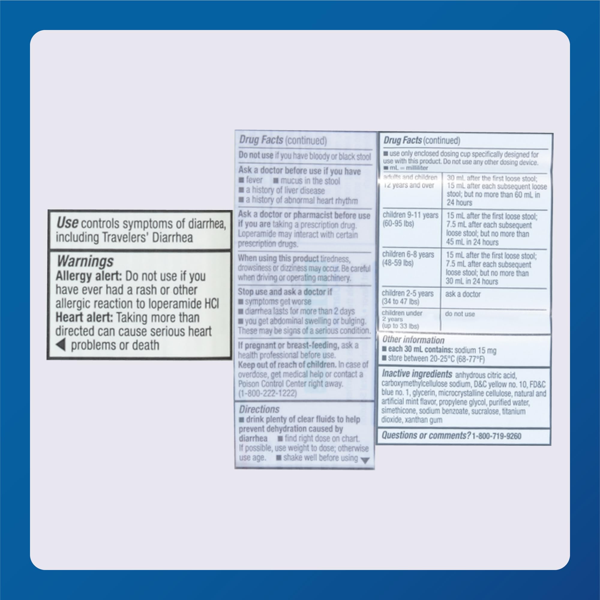 MAJOR Loperamide Hydrochloride Oral Solution - Anti-Diarrheal - Helps Control The Symptoms of Diarrhea - Mint-Flavored - 1 mg per 7.5 mL - 4 Fl. Oz. (1 Pack)