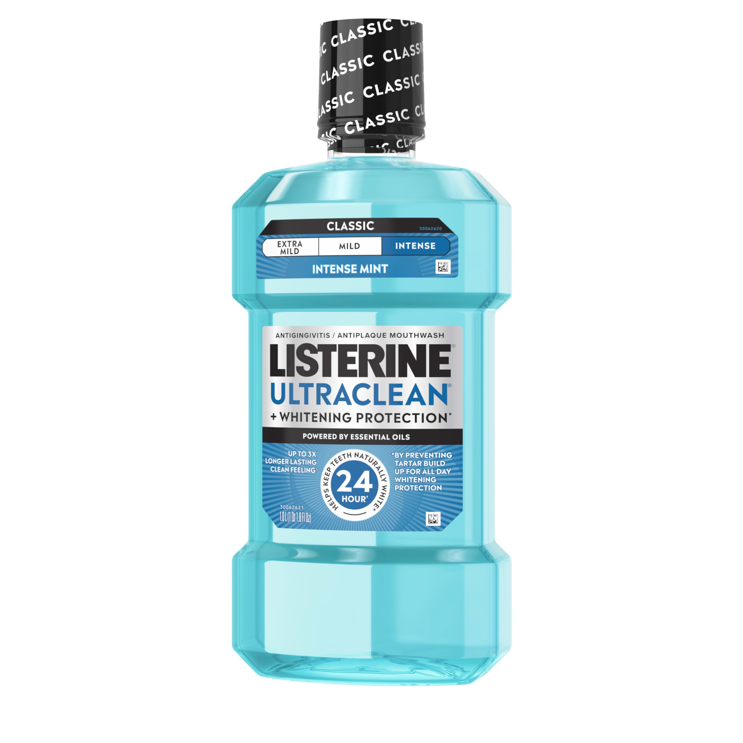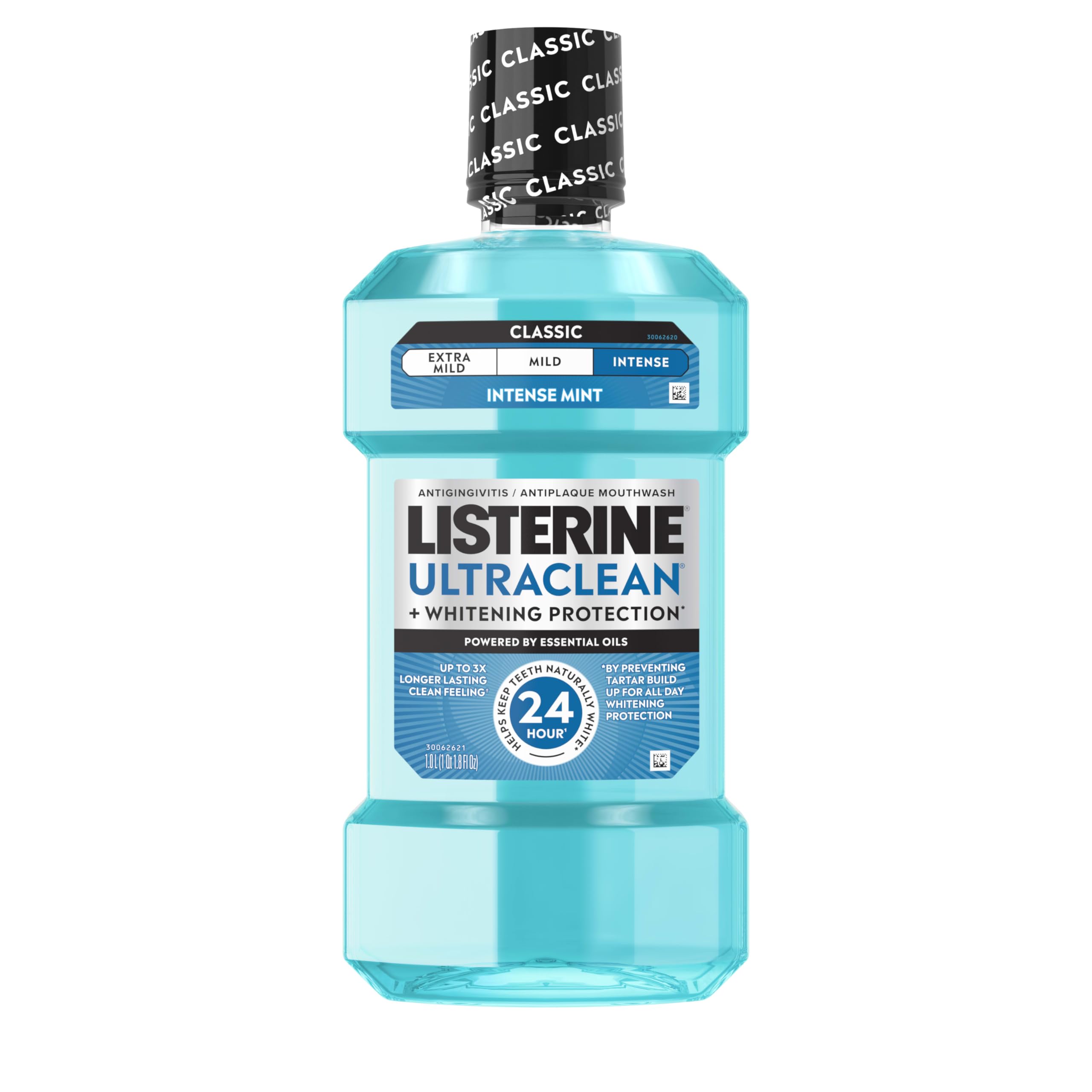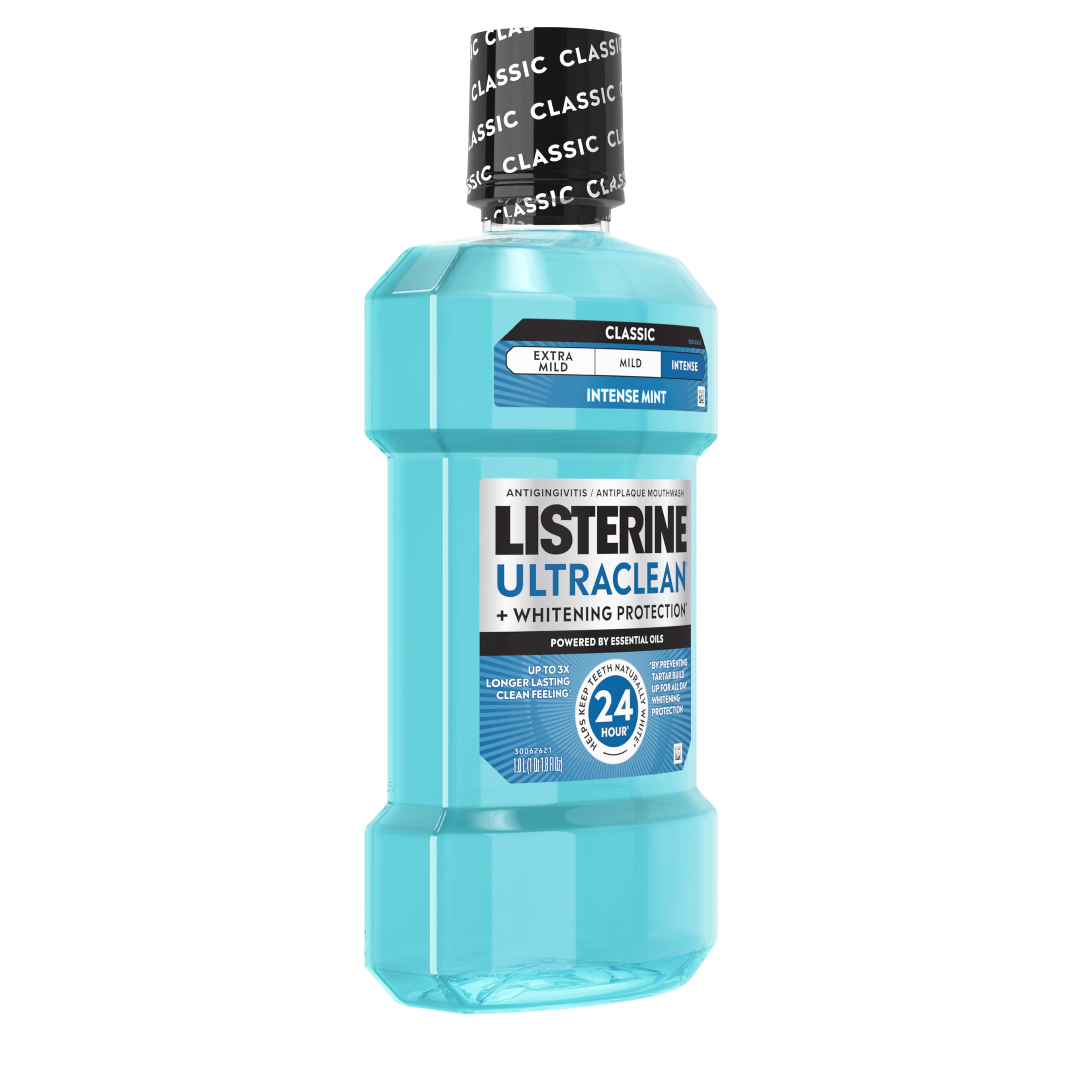 Listerine Ultraclean Intense Antiseptic Mouthwash + Whitening Protection*, Everfresh Technology to Help Fight Bad Breath, Gingivitis, & Plaque, Tartar Control Oral Rinse, Intense Mint, 1L