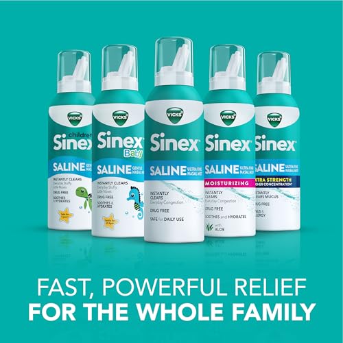 Vicks Sinex Saline Nasal Spray, Drug Free Ultra Fine Mist, Clear Everyday Sinus Congestion Fast, Clear Mucus from a Cold or Allergy, Daily Use 5.0 fl oz
