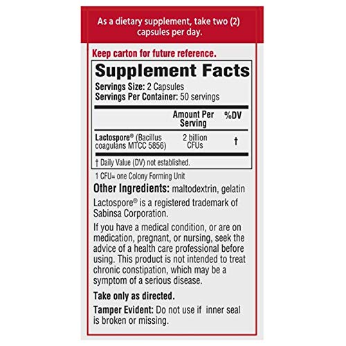 Bacid Daily Probiotic with Bacillus Coagulans, 50 Count, Digestion Supplement to Improve Occasional Constipation