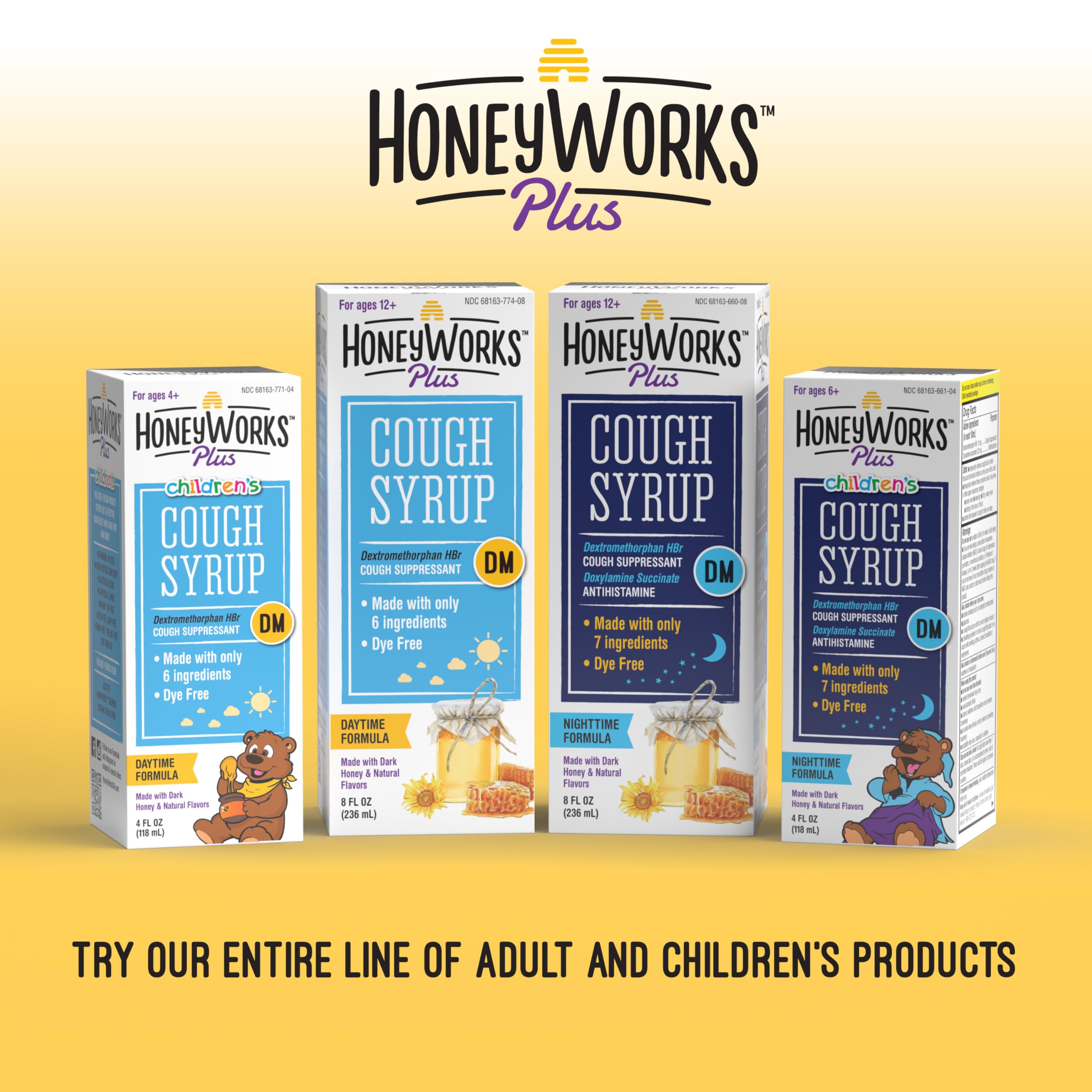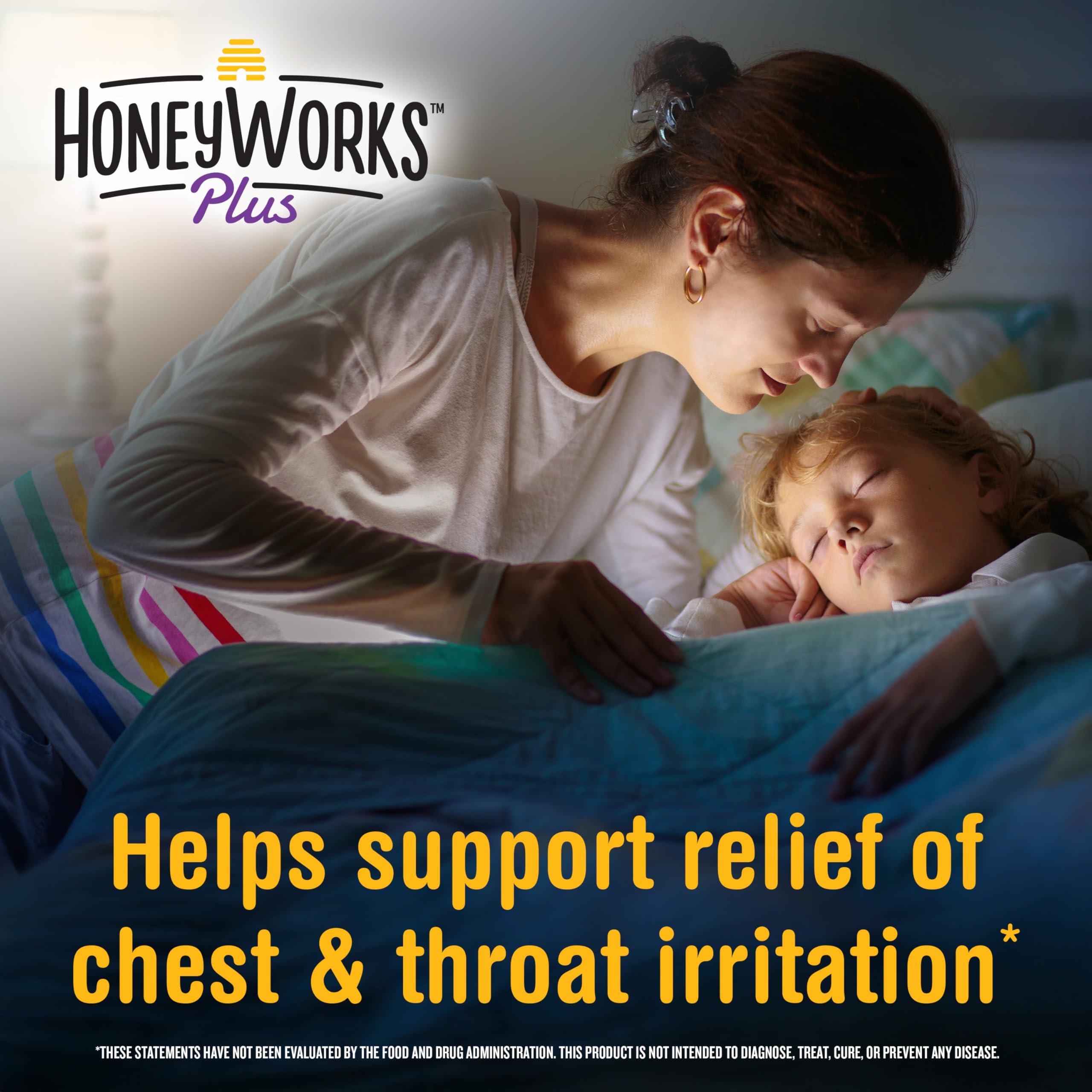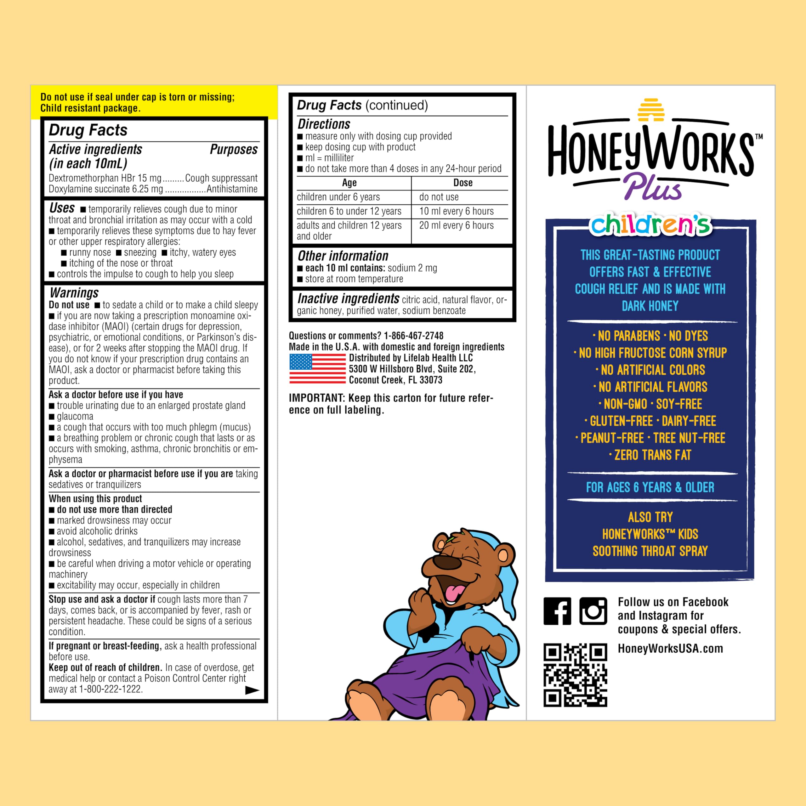 HoneyWorks Nighttime Cough Syrup for Kids with Organic Honey, 4 Oz, Helps Soothe Cough, Throat Irritation with Dark Honey, Ivy Leaf Extract, Melatonin