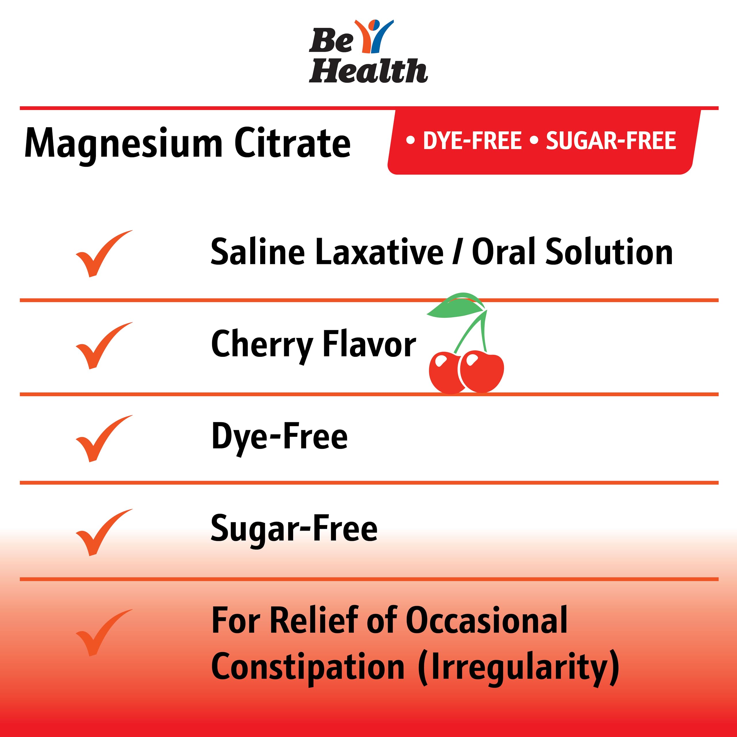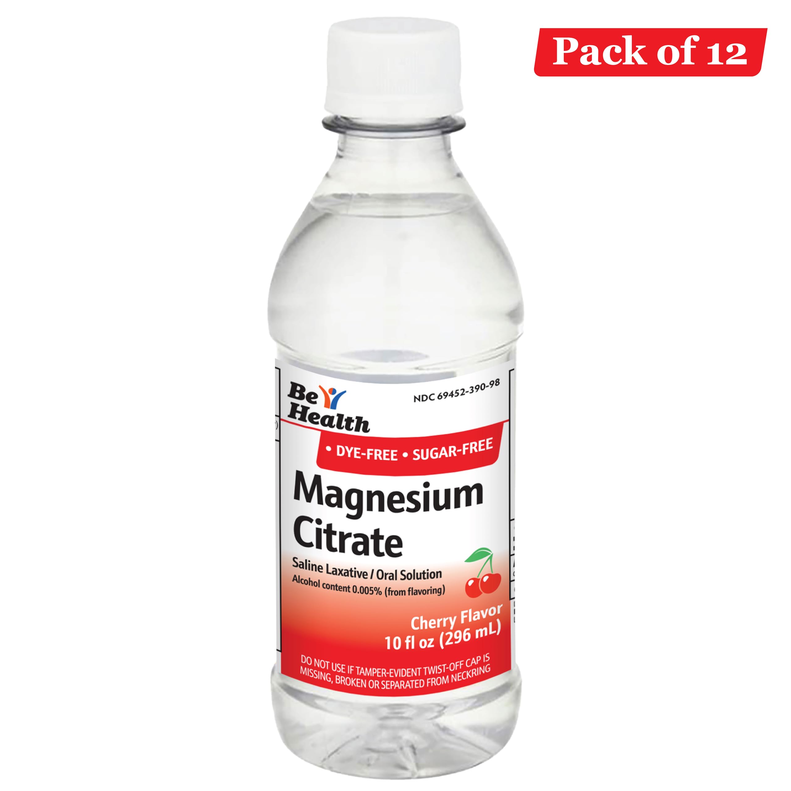 BIONPHARMA Be Health Magnesium Citrate Oral Solution, Saline Laxative, Cherry Flavor, Pack of 12, Made in USA, 10 Fl Oz