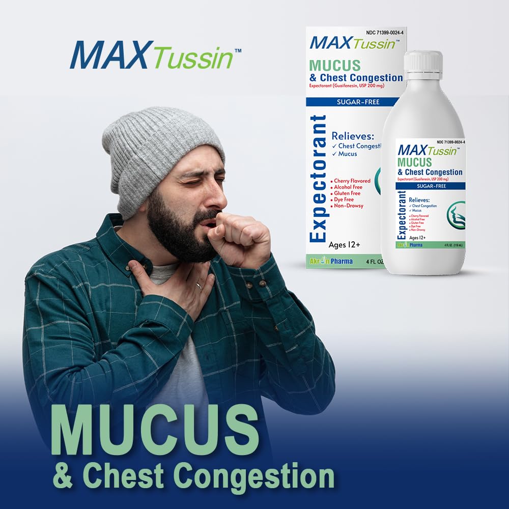 ONELAX MaxTussin™ Dextromethorphan HBr and Guaifenesin Liquid, Cough Suppressant and Chest Congestion Relief Syrup, Cherry Flavored, Non-Drowsy, Alcohol-Free, Ages 12+ - 4 oz