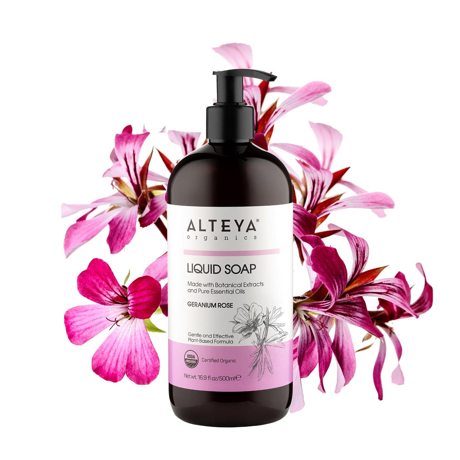 Alteya Organics Liquid Soap Geranium Rose 17 Fl Oz/500mL
