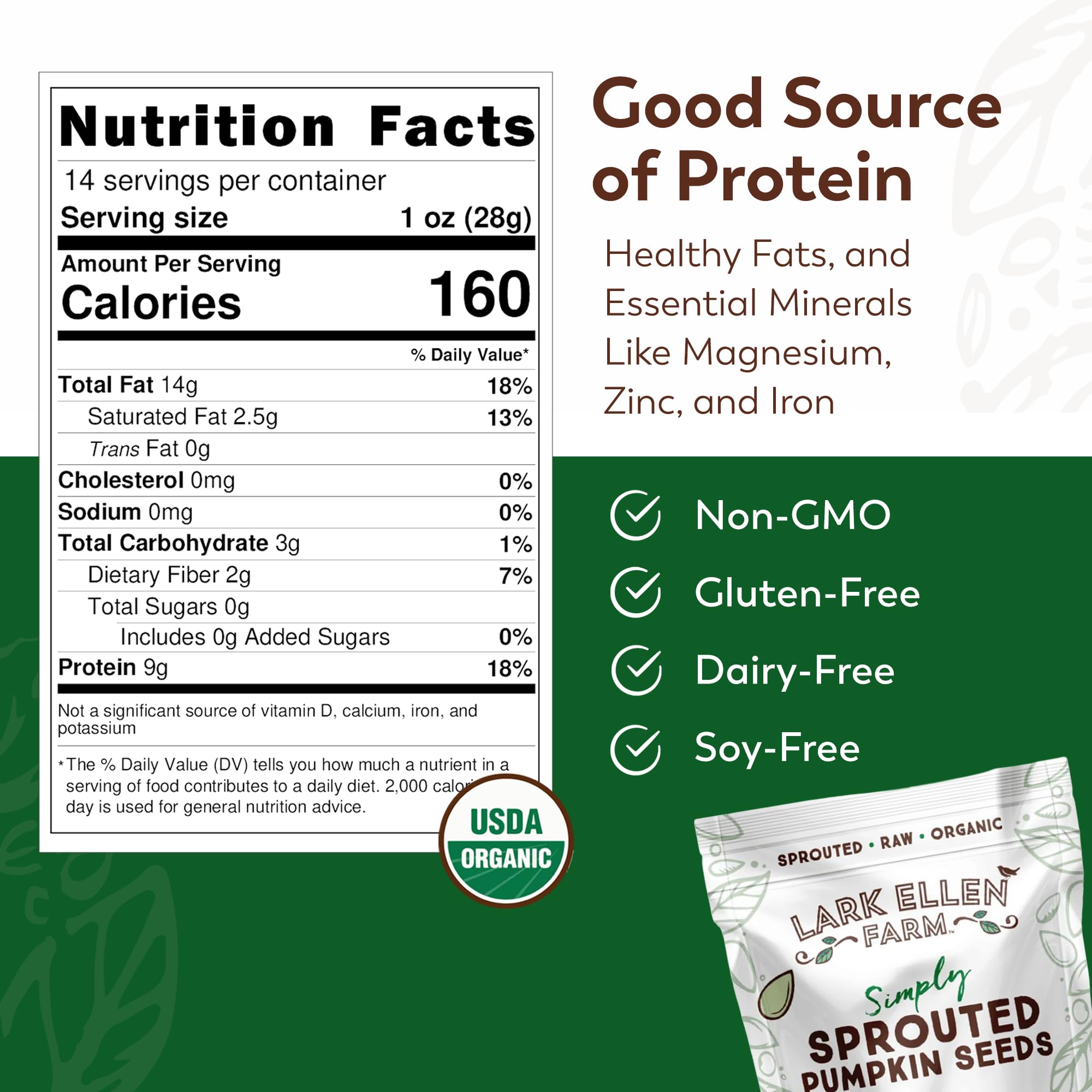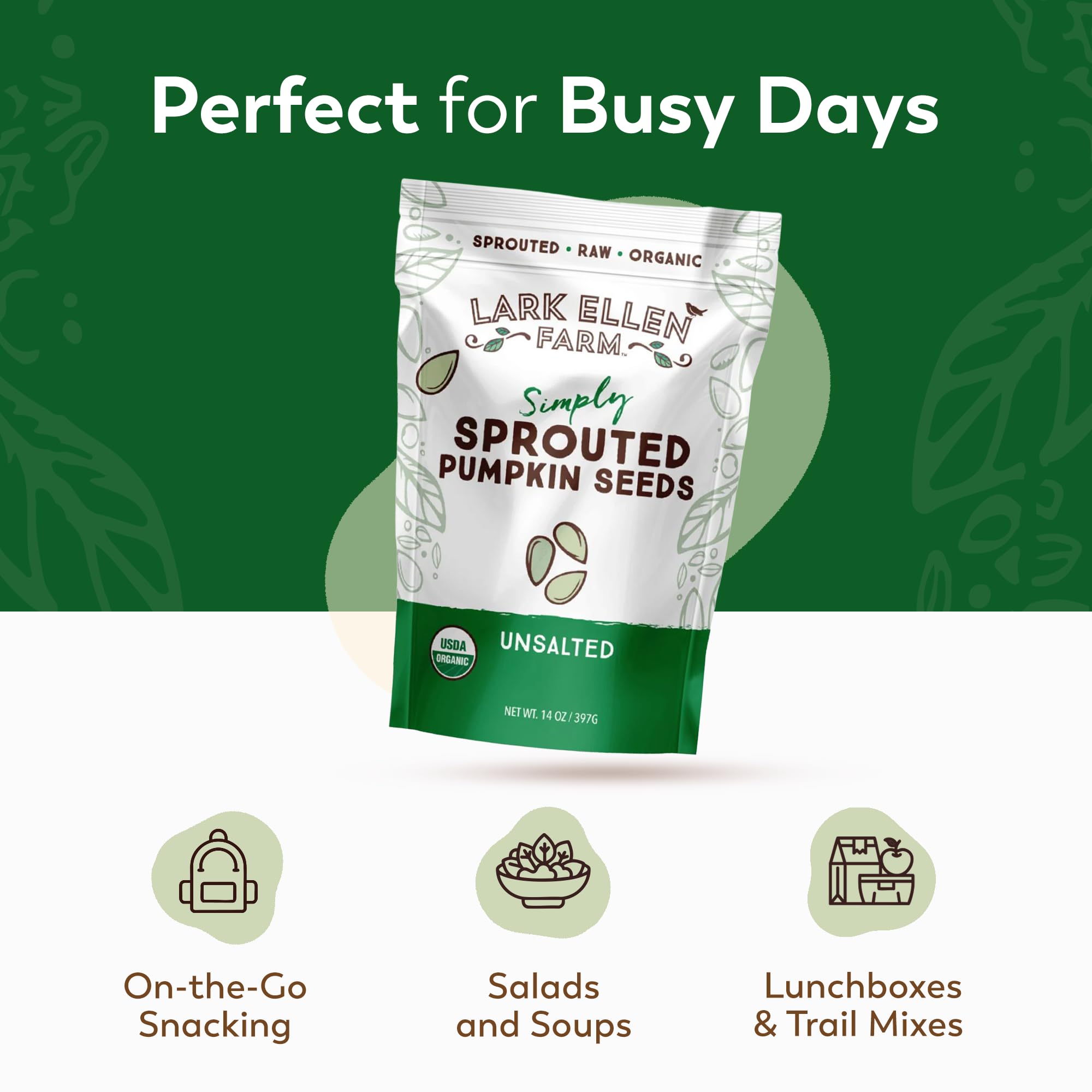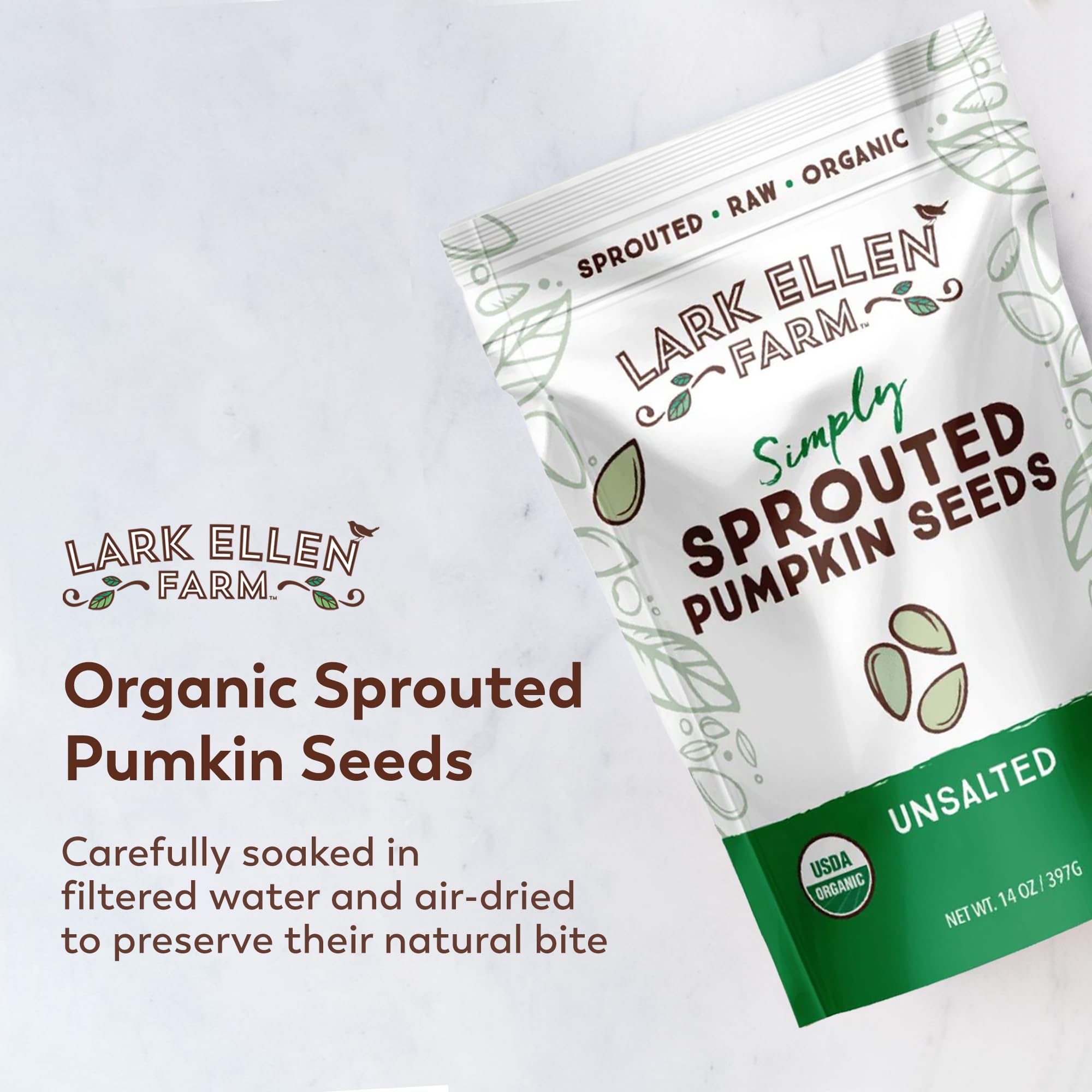 Lark Ellen Farm Sprouted Organic Pumpkin Seeds – Raw, Unsalted, Air-Dried Pepitas for Snacking, Salads, Trail Mix – USDA Organic, Non-GMO, Vegan, Gluten-Free, Resealable Bag (14 oz, 1 Pack)